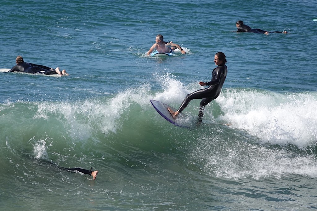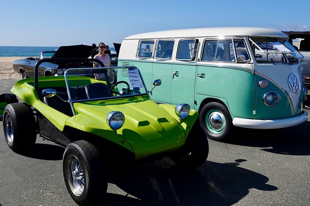 Wir machen uns noch mal auf in den Ort, bummeln am breiten Strand herum, geraten in eine Oldtimer-Show, schauen von der Seebrücke aus den Surfern zu.