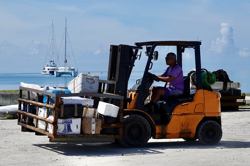 Zunächst mal nutzen wir die Zeit, um von der vergleichsweise guten Versorgungslage zu profitieren. Insbesondere der „Lucky Food“-Supermarkt bietet eine recht gute Auswahl und überrascht uns gelegentlich mit lange nicht gesehenem: Brokkoli und Blumenkohl zum Beispiel. Und Lamm – wir kommen Neuseeland näher. Aber nicht nur Lebensmittel kaufen wir ein. Im „Bluebird – Lumber and Hardware“-Baumarkt finden wir neue wasserabweisende Kissen fürs Cockpit, diversen Kleinkram und – nicht ausgestellt sondern versteckt in der Glaskabine des Marktleiters – einen neuen Starlink-Mini. Das freut uns ganz besonders. Zwar funktioniert unser Starlink (Gen. II Dishy) an Floras Heck wirklich gut, aber er ist leider extrem energiehungrig. Etwa 10 Ampere verbraucht er pro Stunde, verdoppelt damit ungefähr unseren Grundverbrauch. Der kleine Starlink Mini sollte sich ungefähr mit der Hälfte begnügen, das wäre dann tatsächlich eine immense Verbesserung. Und zugegeben haben wir uns an die durch Starlink-Satelliten-Internet eröffneten Online-Möglichkeiten selbst an entlegenen Orten und auf hoher See so gewöhnt, dass wir gerne ein Backup hätten. Der Starlink Mini ist nur etwa so groß wie eine DIN A4 Seite und benötigt keinen zusätzlichen Router, kann theoretisch sogar über einen leistungsstarken USB-C Anschluss versorgt werden. Wir haben ihn hier im Hafen erst einmal provisorisch unter dem Vorschiffsluk platziert und sind mit seiner Leistung mehr als zufrieden.
