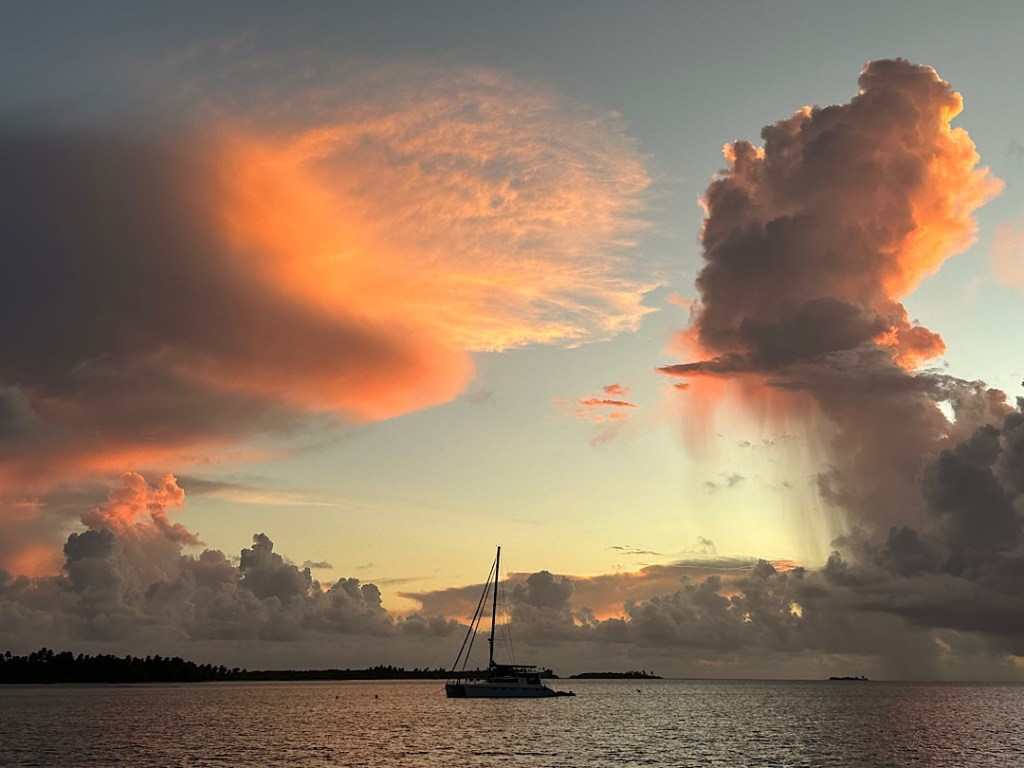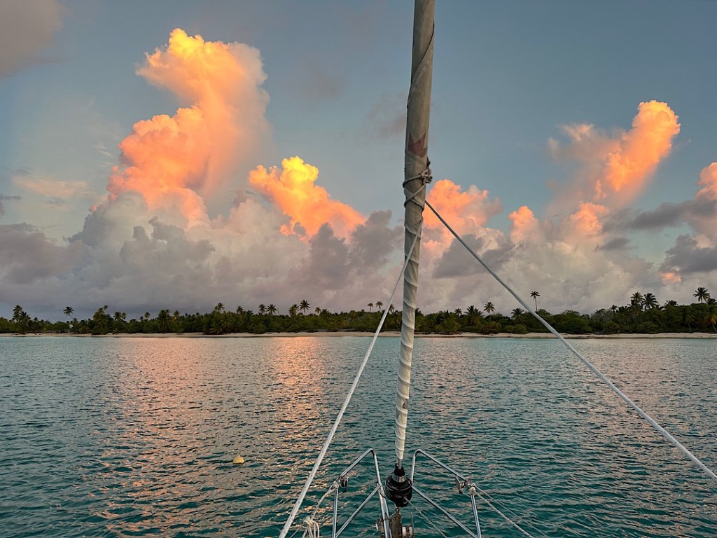 Und was gibt’s sonst noch so an Bootsarbeiten? Wir nehmen alle Vorhänge ab, behandeln sie gegen Spak und waschen sie. Danach holen wir uns Fingerkrämpfe beim Wiederaufhängen, weil gefühlt hunderte kleine Haken verdeckt durch die Ringe in den Schienen an den Fenstern gefädelt werden müssen. Und wir betreiben im Motorraum Ursachenforschung für die Überhitzung des Generators. Genau genommen schließen wir einige mögliche Ursachen aus. Der Impeller ist ok, die Schäuche sind es auch. Das Leck scheint in der Seewasserpumpe selbst zu liegen und auch der Wärmetauscher muss ausgebaut und gereinigt werden. Wir bleiben also bis Neuseeland wohl erstmal ohne Dieselgenerator, aber das ist nicht weiter schlimm.