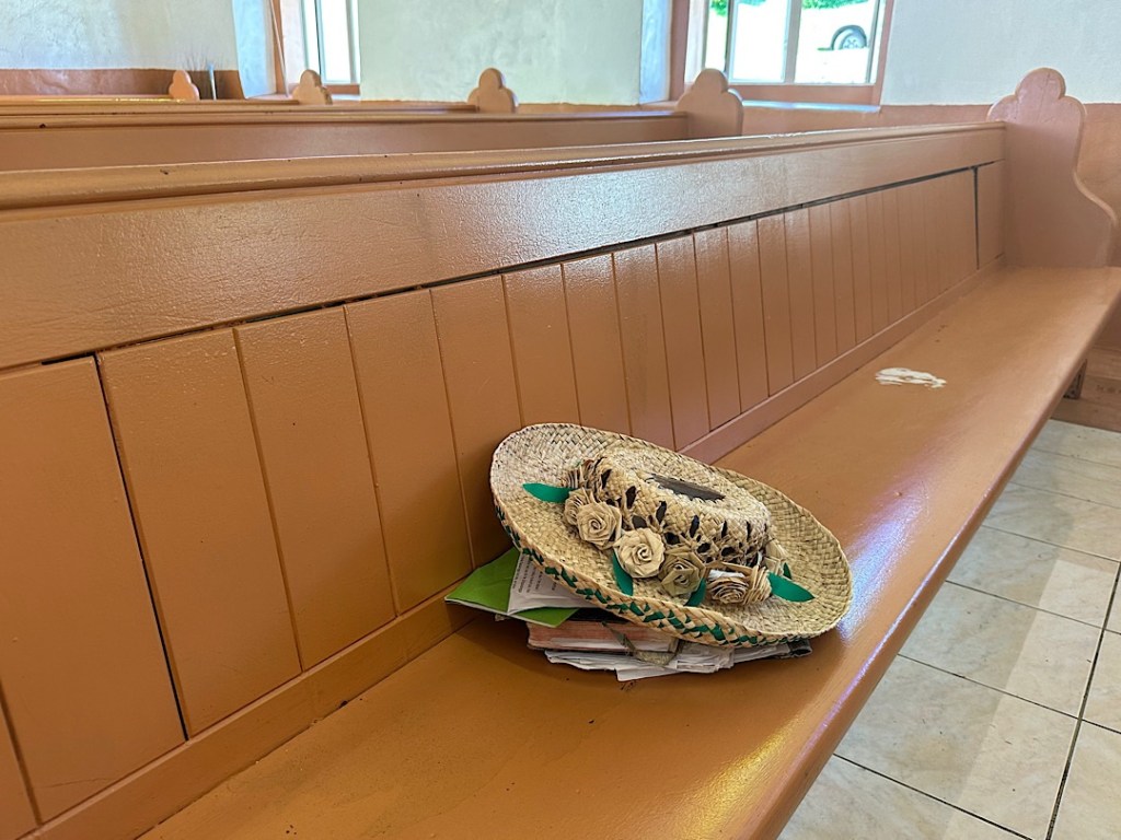Joseph probiert zunächst in meinem Beisein aus, ob er durch die Panel nähen kann. Das klappt, und so lasse ich ihm die Sachen da. Zwei Tage später kann ich sie repariert wieder abholen.
