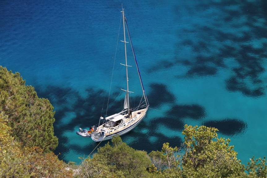 Jetzt hatten wir das richtige Boot für die Langfahrt, aber es lag halt im Mittelmeer. Der Liegeplatz dort war vom Vorbesitzer noch für ein Vierteljahr bezahlt, das wollten wir ausnutzen und erst danach entscheiden, ob wir es wie ursprünglich gedacht per Lkw hoch zur Ostsee holen. Drei Törns im ionischen Meer später war klar, dass aus dem Landtransport so schnell nichts werden würde. Zu sehr verwöhnte die ionische Inselwelt uns Ostseesegler mit kristallklarem Wasser, Sonnenschein und traumhaften Temperaturen, mit Ankeridyllen und Tavernen. Selbst der Saisonabschlusstörn Anfang November mit Stipvisite in Italien war traumhaft.