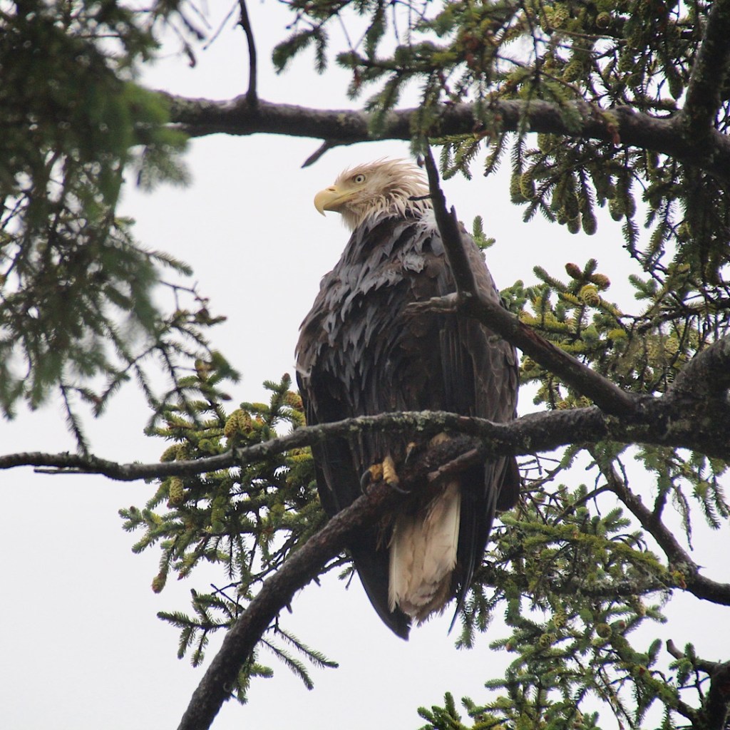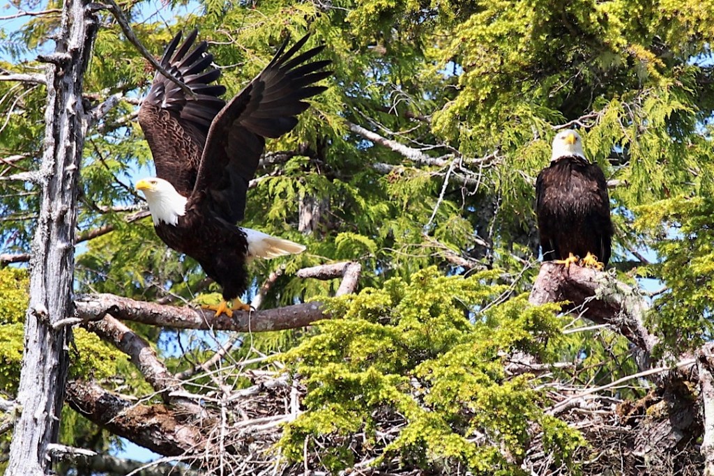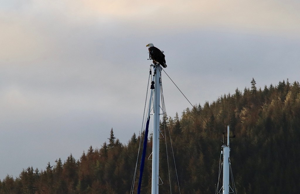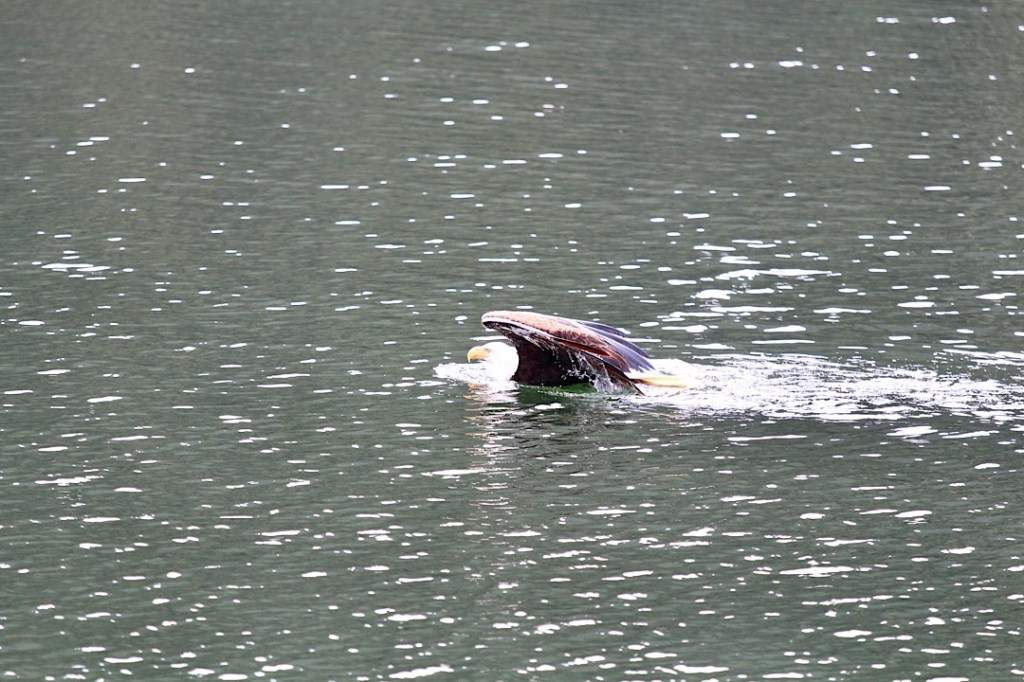 Besonders schön ist, dass wir bei der Anfahrt einen kurzen Blick auf zwei große Rundkopfdelfine erhaschen (leider kein Foto) und zudem direkt an der Durchfahrt einen Adlerhorst entdecken.