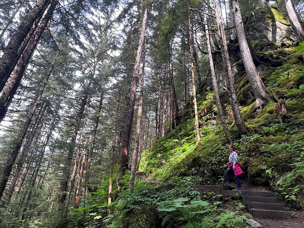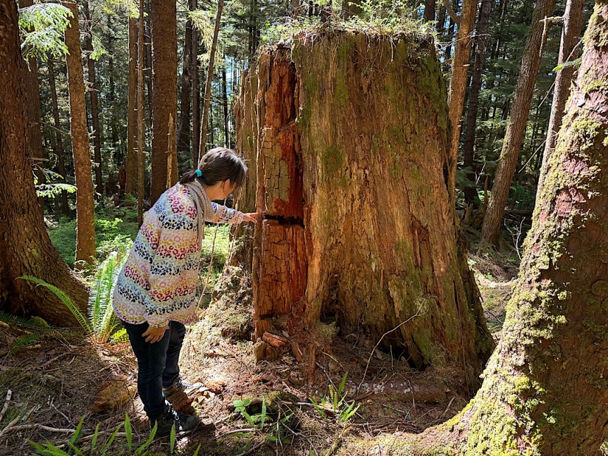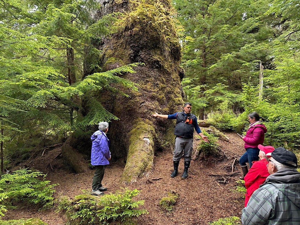 Eine andere Besuchergruppe ist gerade dort. Da nur maximal 12 Besucher vor Ort sein sollen werden wir gebeten, zunächst auf der anderen Seite der Bucht die Jahrhunderte alte Spruce (Fichte) zu besichtigen. Das passt gut, denn dort können wir uns einer geführten kleineren Gruppe anschließen, sehr informativ für uns, zumal Guide James spannend und unterhaltsam auch über die Geschichte des Protests berichtet.