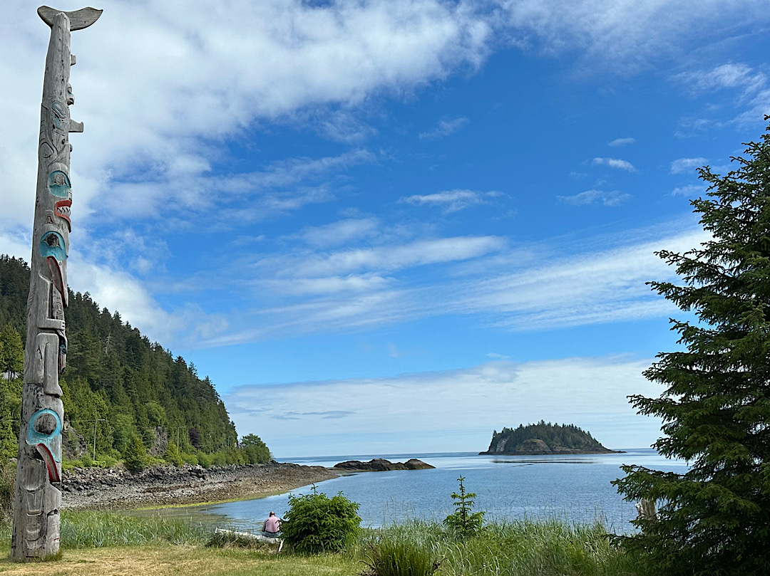 Die Haida Nation gilt als kämpferisch. 1985 stellten sie das einmal mehr unter Beweis, wenn auch diesmal auf friedliche Weise. Mit Sitzblockaden erkämpften sie einen Stop des intensiven Holzeinschlags auf Lyell Island und weiteren Teilen von Haida Gwaii durch die großen Logging-Gesellschaften. Die hatten zwar von der kanadischen Regierung ausgestellte Einschlag-Lizenzen, aber die Haida betrachten das gesamte Gebiet als ihr eigenes Territorium. Die Blockierer wurden verhaftet, aber die Aktionen brachten Aufmerksamkeit: der Fokus der Öffentlichkeit richtete sich auf drohende Vernichtung wesentlicher Kulturgüter der Haida sowie des uralten Baumbestandes durch eine nicht wirklich als nachhaltig zu bezeichnende Holzwirtschaft. Letztlich war der friedliche Protest erfolgreich. Fast das gesamte südliche Haida Gwaii wurde 1988 zum „Gwaii Haanas National Park Reserve and Haida Heritage Site“ erklärt. 1.470 Quadratkilometer groß und mit einigen Besonderheiten. So verweist das „Reserve“ auf die Nutzungsrechte der lokalen indigenen Völker, außerdem erfolgt die Verwaltung wegen der noch immer umstrittenen Besitzrechte gemeinsam durch die kanadische Regierung und den „Council of the Haida Nation“. Straßen gibt’s in Gwaii-Haanas übrigens keine. 😊