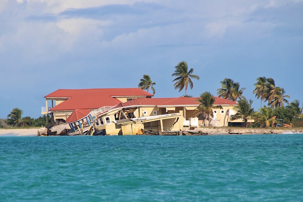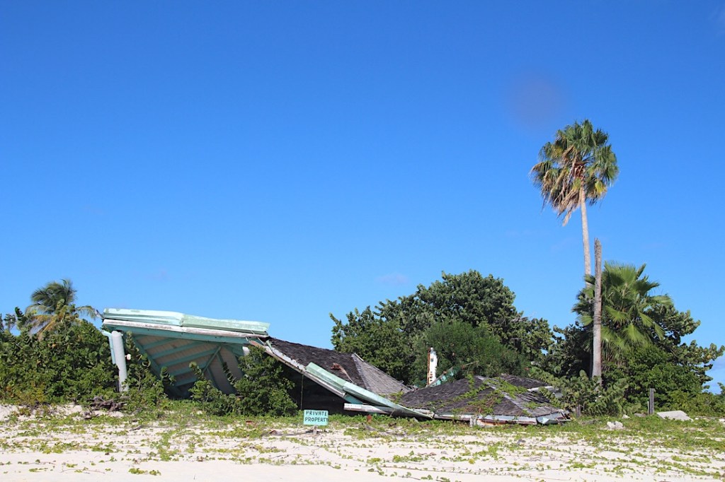 Die Schattenseiten zeigen sich oft erst auf den zweiten Blick. Die ins Meer abrutschende Ruine des Luxushotels am Nordende des Durchbruchs in die Lagune hatte ich ja schon erwähnt und auch am Princess Diana Beach vergammeln Ruinen eines einstigen Luxushotels. Aber Sprengkraft hat nicht nur die Naturgewalt des Hurrikans bewiesen, sondern auch der verwaltungsseitige Umgang mit den Folgen.