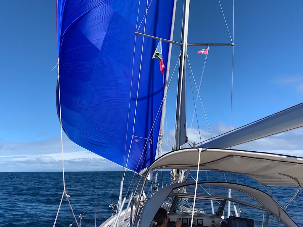 Ein Stück müssen wir auch motoren. Aber wir haben reichlich Angelglück. Zuerst allerdings zweimal Barrakuda, die gehen wegen der Ciguateragefahr gleich wieder ins Wasser. Dann eine Blaurückenstachelmakrele. Eine Golddorade wird uns leider abgefressen. Zum Schluss noch ein schöner Wahoo. 🎣