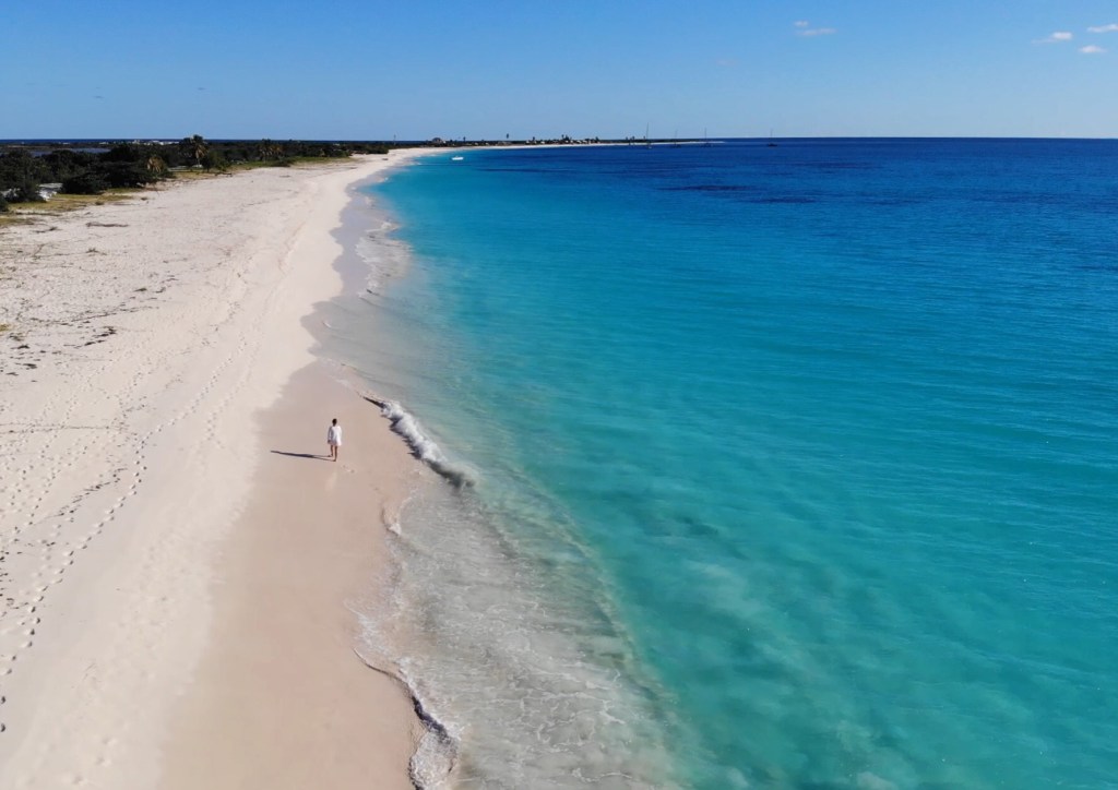 So sieht’s aus. Low Bay, an der Westseite von Barbuda. Zumindest in Corona-Zeiten kann es Mitte Dezember passieren, dass sich kein anderes Schiff hierher an den wunderbaren, steil aus dem türkisfarbenen Wasser aufsteigenden feinsandigen Strand südlich der Lagunenpassage verirrt. Im Frühjahr hatten wir hier nördlich des Durchbruchs geankert, aber die halbverfallene und langsam ins Wasser abrutschende Hotelruine dort schlägt doch ein bisschen auf die Stimmung.