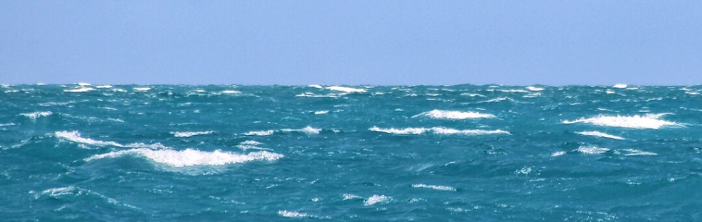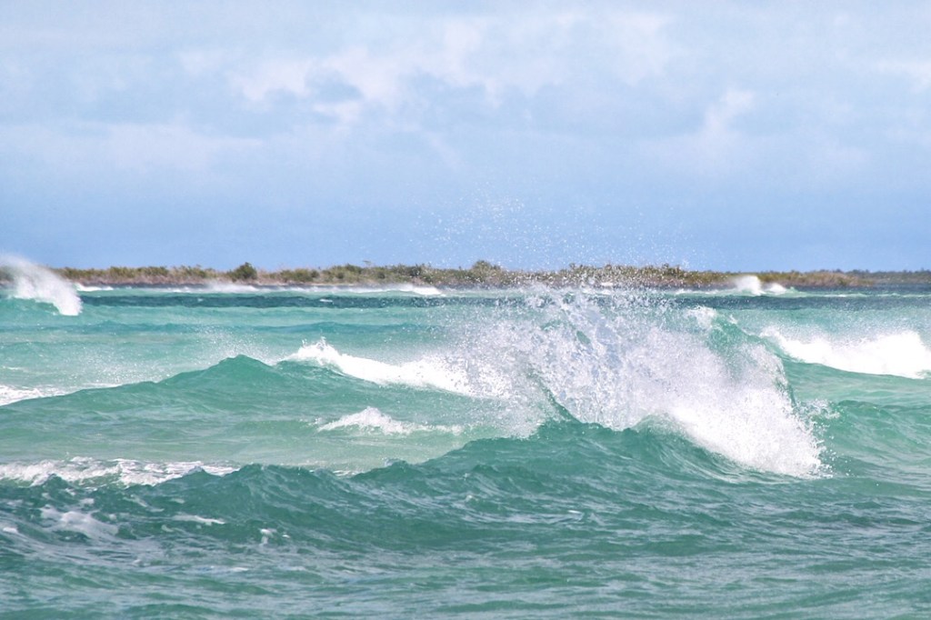 Es ist nicht das erste Mal, dass ein Hurrikan der flachen Lagune einen zusätzlichen Meerwasserzugang verschafft. Und wie bisher immer, wird sich wohl auch diese Lücke irgendwann wieder auf natürliche Weise schließen. Derzeit ist aber die Passage mit flach gehenden Fischerbooten oder Dinghys möglich. Allerdings steht häufig eine konfuse Welle über dem größten Teil des Eingangs, es sieht in der Enge trotz sonst eher ruhigem Wetter auch heute durchaus beeindruckend aus: