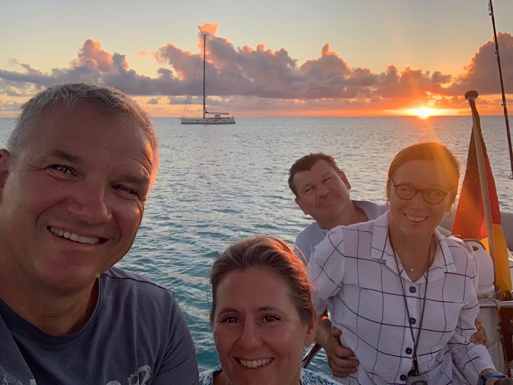 Den Tip haben wir jetzt schon ein paar Mal bekommen und wir versuchen ihn zu befolgen. Ja, die Auswirkungen des Corona-Virus bzw. der Maßnahmen zu seiner Eindämmung sind inzwischen praktisch überall auf der Welt spürbar. Reisebeschränkungen betreffen auch die Karibik, alle Boote um uns herum sind irgendwie betroffen. Können sie ihre Pläne für die Hurrikansaison noch umsetzen und falls nicht, welche Alternativen gibt es? Oder: die Azoren haben dicht gemacht, wie bekommt man jetzt sein Boot am Ende des Sabbatjahrs wieder nach Europa? Geplante Heimflüge können nicht stattfinden oder die Familie sagt einem deutlich, das man nach der Flugreise und der Ansteckungsgefahr auf den großen Flughäfen die Großeltern oder Eltern nicht besuchen darf. All das ist Gegenstand des sonst so lockeren und unbeschwerten Schnacks auf der Dinghyrunde bei den Nachbarbooten. Sollte man die überhaupt noch machen? Oder lieber freiwillige Quarantäne zur Verminderung der Ansteckungsgefahr? Muss letztlich jeder für sich entscheiden. Für heute war unsere Entscheidung: Beach-BBQ mit den Crews zweier befreundeter Booten und dreier weiterer Langfahrtboote hier am Traumstrand von Barbuda.