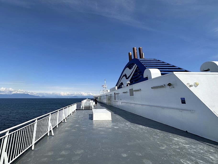 Mit denen – zweimal ausgedruckt – machen wir uns am nächsten Tag auf den Weg nach Richmond bei Vancouver auf dem Festland. Also 2 Stunden Autofahrt nach Nanaimo, dann 2 Stunden Fähre und nochmal eine halbe Stund Auto. Nahe des Flughafens im Zollgebäude dann ein kurzes Interview mit dem Officer: Wofür ist das Segel? Ach, für Euer Boot. Bootspapiere vorlegen, er kopiert sie. Wie lange bleibt ihr noch in Kanada? Ja dann, Zack, Stempel, Segel kann bei DHL abgeholt werden. Deren Lager ist fast nebenan und nach kurzer Wartezeit kriegen wir das Segel in den Kofferraum gelegt. “You are all set.” Fertig, keine Gebühren.