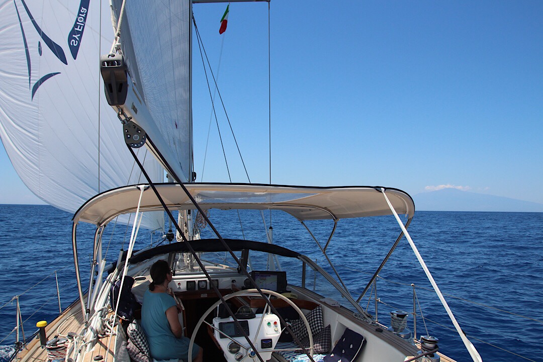 Seit gestern Abend 21.00 Uhr brummt überwiegend der Diesel. Der Wind hat sich komplett verkrümelt und haucht mit unter 4 kn abwechselnd aus allen Richtungen rund um die Kompassrose. Dafür hat der Regen aufgehört und wir motoren über eine fast glatte See mit ein wenig altem Schwell. Wir lassen das Großsegel dichtgeholt stehen, um die die Amplitude unserer Schaukelbewegungen etwas zu dämpfen.