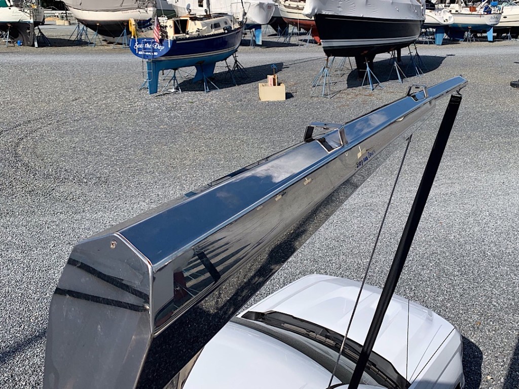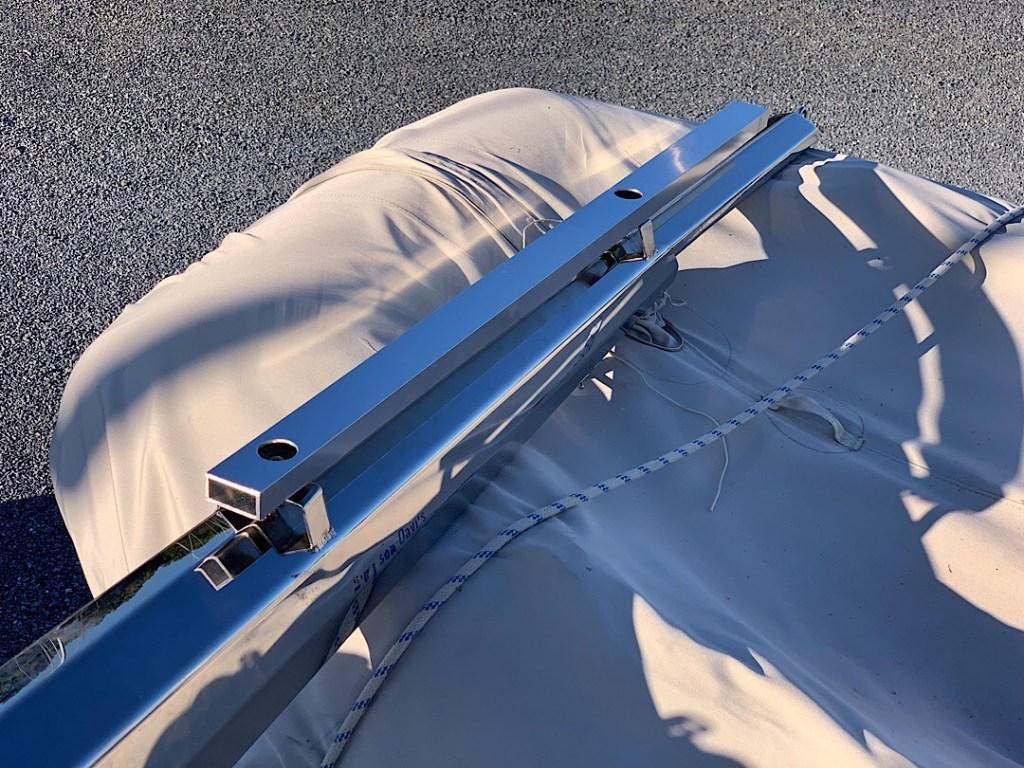 Also: mehr Solar, bitte. Wir haben uns nach reiflicher Überlegung für ein zusätzliches etwa 2 m x 1 m großes 400 WP Panel auf den Davits entschieden. Bei der Befestigung habe ich mehrfach mit Mike über die beste Variante diskutiert. Das Panel soll einfach demontiert werden können und wir wollen eine schlanke Lösung ohne hohen Aufbau. An der Umsetzung haben Mike und ich die letzten Tage (also das Wochenende!) gearbeitet. Zwei flache Edelstahlbrücken mit eingeschweißter Mutter sind auf jeden der Davits geschweißt.