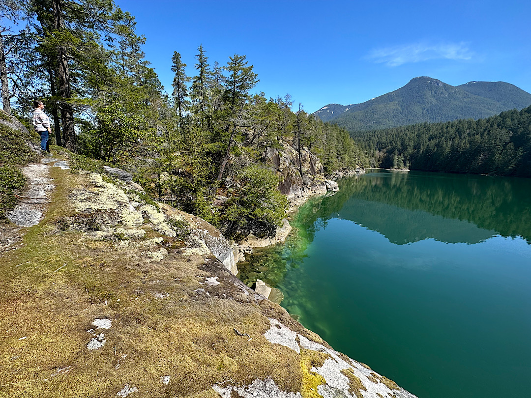 Irgendwann reißen wir uns doch von dem wunderschönen Prideaux Haven im Desolation Sound los. Wie so oft gibt die Wettervorhersage den Ausschlag: ein bewölkter Tag ohne Wind und dann Nordwestwind. Passt super, um uns Richtung Princess Luisa Inlet aufzumachen.