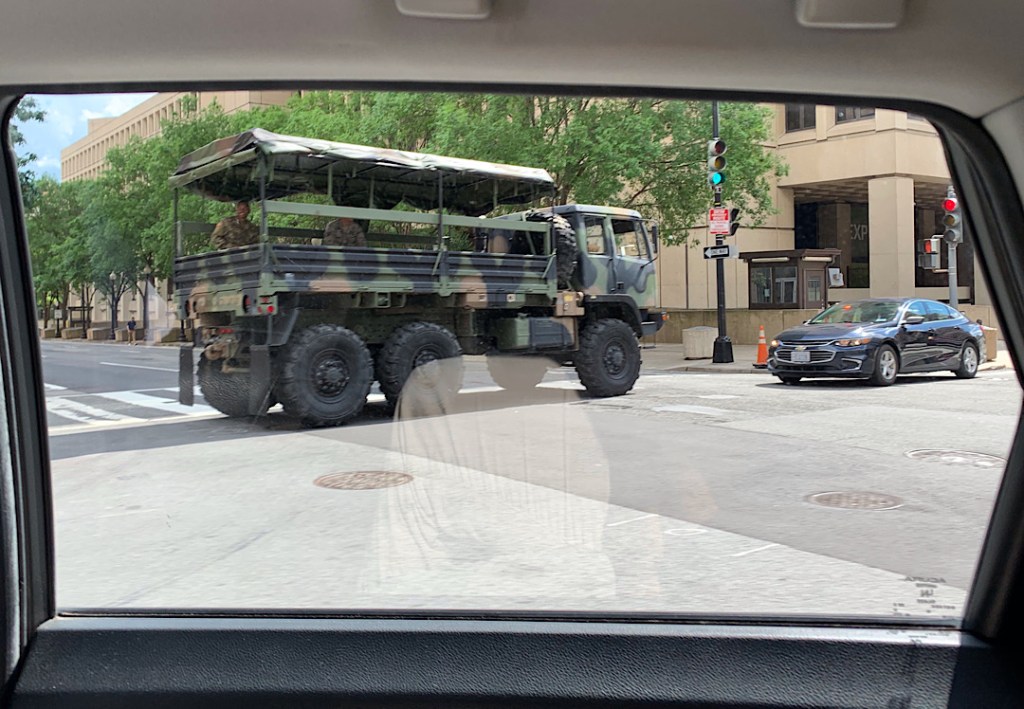 Der Plan, hinunter ans Wasser zu fahren und sich dort das neue Viertel an der South-West-Waterfront anzusehen erweist sich als nicht ganz einfach umzusetzen. Überall weiträumig um das weiße Haus herum sind die Straßen mit Militärfahrzeugen abgeriegelt.