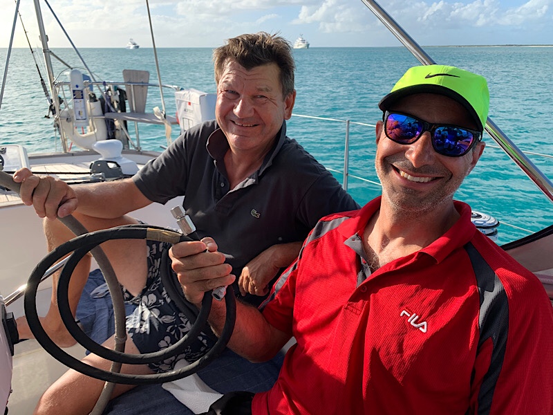 Mit dem ausgebauten Schlauch geht’s zunächst hinüber zur Gerty, denn Michael hat ebenfalls einen Watermaker von Echotec, den er zudem selbst installiert hat, dass könnte bei der Kürzung des Schlauchs und der Neumontage des Fittings ebenso helfen wie die eingerichtete Werkstatt in der Backbordachterkabine der Gerty (Allures 45.9). Es wird ein Teilerfolg und führt daher dazu, das auch die anderen Crews eingebunden werden. 😊