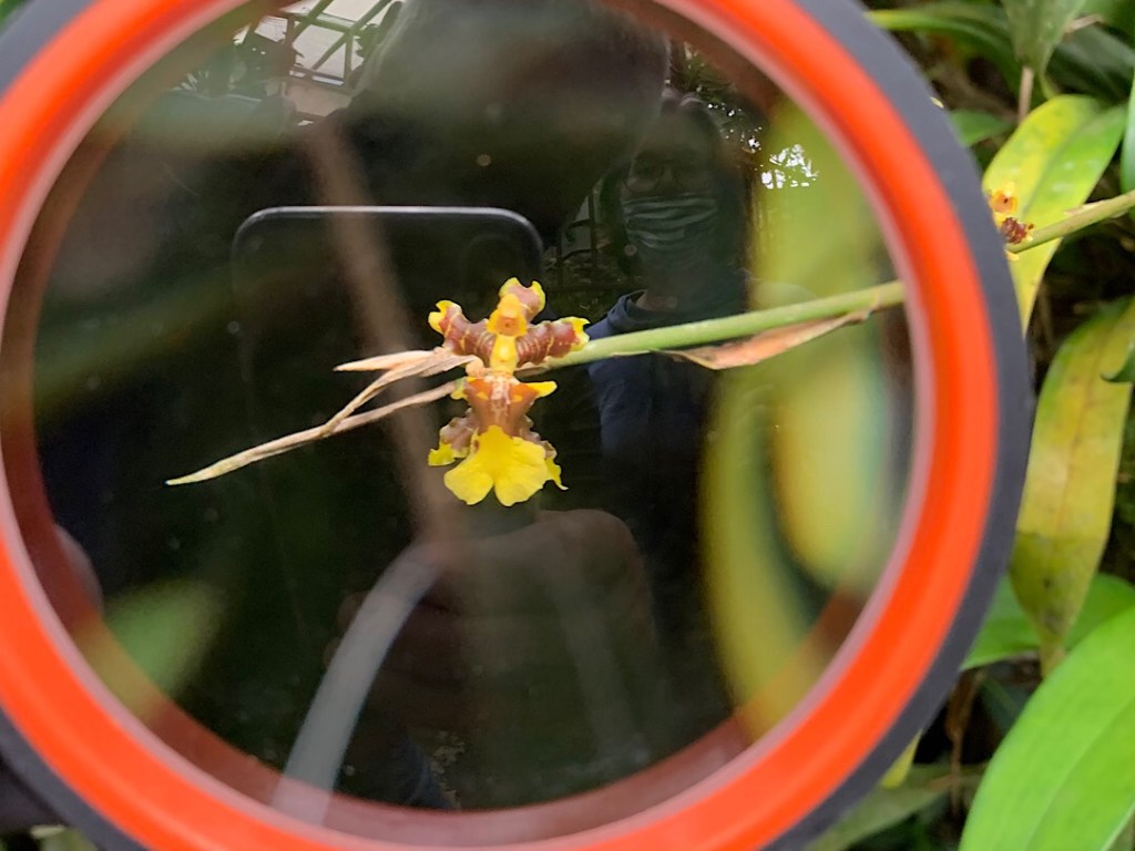 Als wir weiter wandern, bilden an lichten Stellen von die Luftwurzeln richtige Vorhänge. Aber die weniger dicht bewachsenen Stellen werden seltener, immer öfter verliert sich der Weg durch den Urwald mehr und mehr im Dickicht. Die Kontrolle auf dem Handy aber sagt: wir sind immer noch richtig.