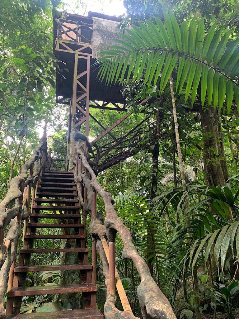 Am nächsten Tag verlegen wir die Flora vor den kleinen „Hauptort“ von Bastimento. Das gibt uns die Gelegenheit für einen weiteren Hike hinüber zur Nordseite, diesmal zum Wizard Beach. Wiebkes Wander-App „Komoot“ weist verschiedene Wege dahin aus, wir entscheiden uns für den Weg über den höchsten Punkt der Insel. Sind nur 73 m, das sollte nicht so schwer sein.
