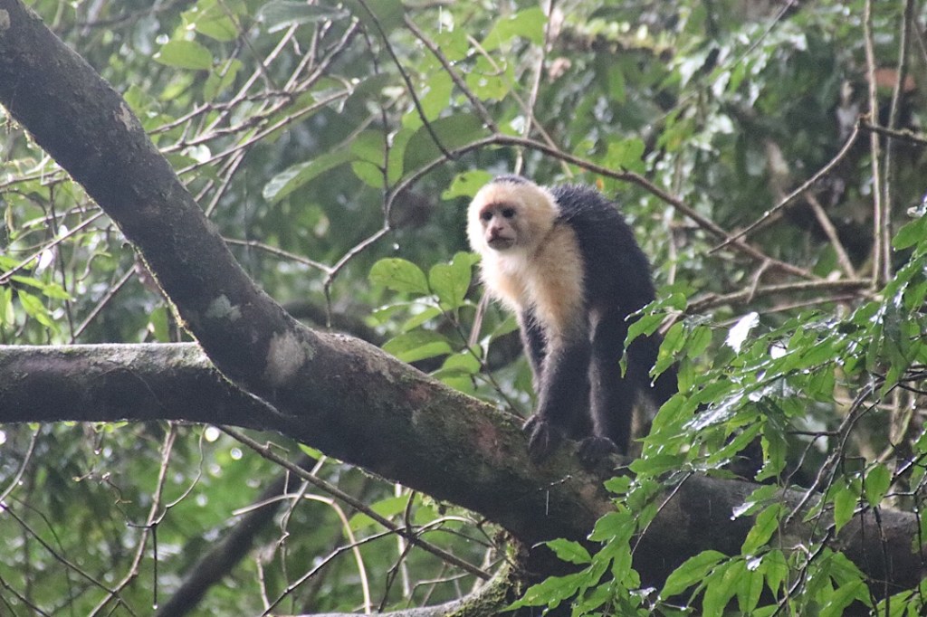Von Mel bekommen wir auch gleich den Tip, in welchem Baum wir mit hoher Wahrscheinlichkeit ein Faultier finden. Tatsächlich ist es wieder da – und diesmal nicht allein. Eins weiter unten am Baum, gaaaanz langsam im Aufstieg begriffen. Wahrscheinlich hat es gerade sein Geschäft gemacht, einmal pro Woche kommen die Faultiere dafür auf den Boden herunter. Ein zweites Dreizehenfaultier mit einem Jungen auf dem Rücken ganz versteckt weiter oben im gleichen Baum, für uns nur sichtbar als ein Fellknäuel mit mehr Armen, als zu einem einzelnen Faultier gehören. Die Gesichter sind leider verdeckt. Dafür zeigt sich aber das untere Perezoso (so der hiesige spanische Name) ausnahmsweise perfekt in der Sonne.