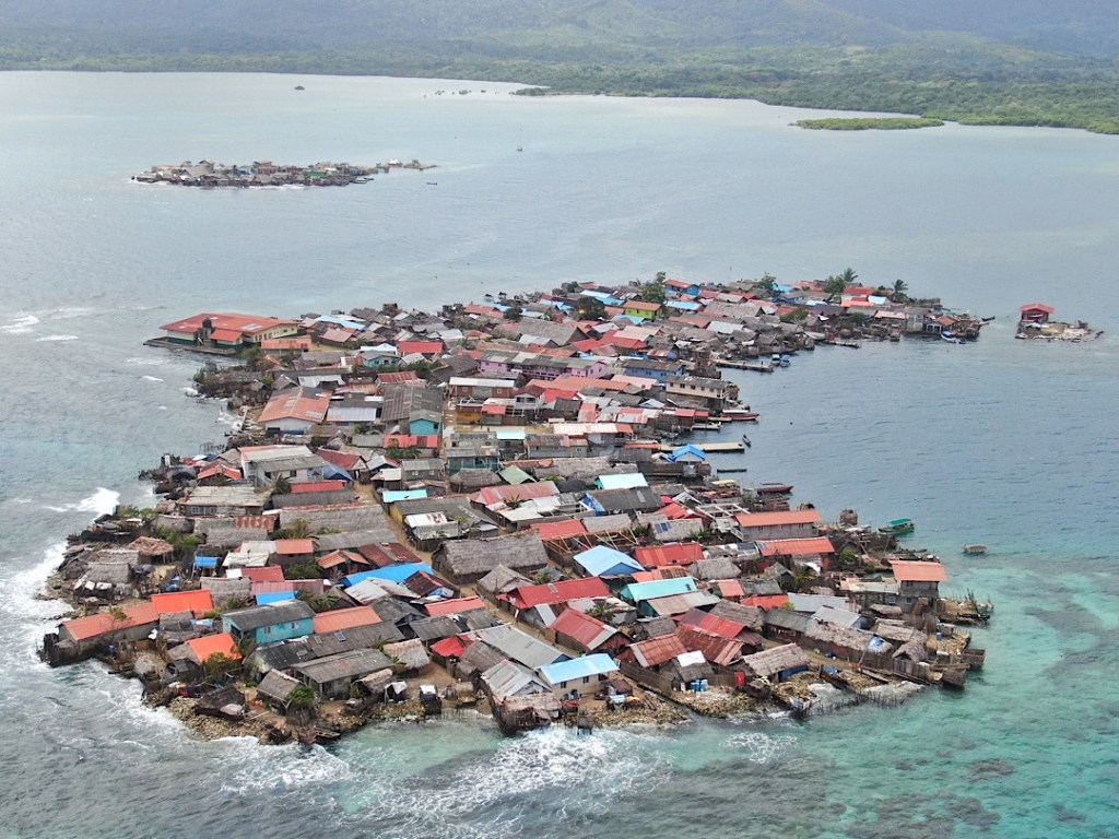 Und während eine windschiefe Palmwedelhütte auf der fotogenen Miniinsel draußen mit den Kokospalmen noch romantisch wirken mag, wirkt das Bild doch sehr viel weniger paradiesisch, wenn viele davon quasi aufeinander zu rutschen scheinen.