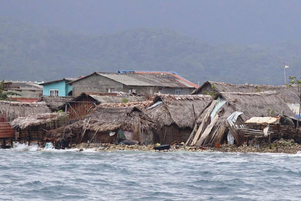 Rio Sidra und das benachbarte etwas kleinere Nusadup sind zwei der Kunadörfer auf “Wohninseln”. Dicht bebaut mit Hütten, die zum Teil noch ganz traditionell mit Palmwedeln gedeckt sind, zum Teil auch Wellblechdächer haben. Wobei, dicht bebaut ist eher noch eine Untertreibung. Wir haben noch Venancios Aussage im Ohr, dass seine Familie mit 18 Personen in einer Hütte wohnt.