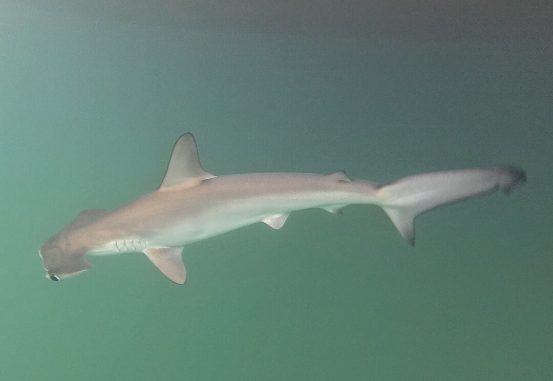 Laut Aussage der Marine-Biologin von einem der Whalewatching-Tourboote hier im Hafen nutzen die Hammerhaie diese Gewässer als Geburtsstube, wie übrigens auch die von uns beobachteten Zügeldelfine, die sich nur im Sommer so weit nördlich aufhalten.
