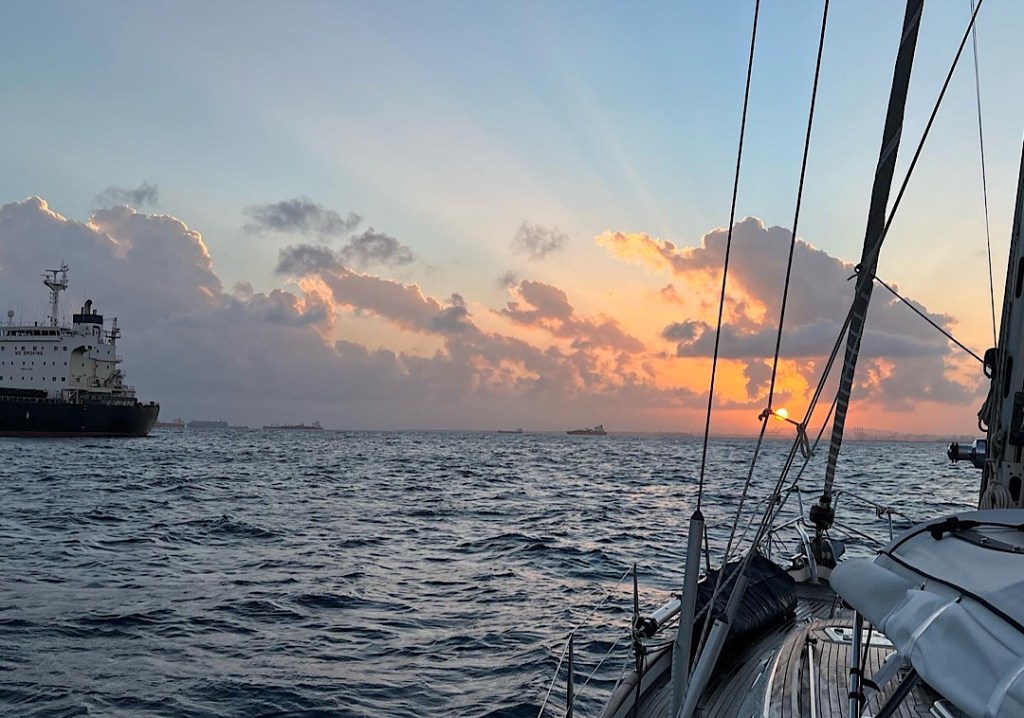 Schon bei Sonnenaufgang erreichen wir die Reede vor Colón.