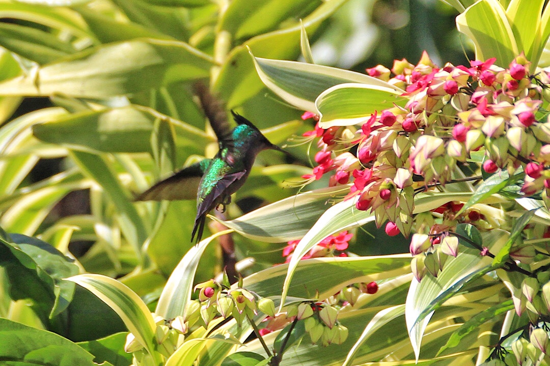 Die Seelöwen auf den Stegen geben zwar Tag und Nacht lautstarke Bell- und Rülps-Konzerte, aber ansonsten gefällt uns der Hafen ganz gut. Wir erledigen in der Laundry die Wäsche, füllen Wasser auf (in der Bay möchten wir den Wassermacher nicht lange laufen lassen). Und mit der direkt vor der Marina abfahrenden U-Bahn machen wir einen Ausflug in den Stadtteil Sunset zum botanischen Garten. Statt weiteren Bildern von schönen alten Häusern (die es auch in Sunset reichlich gibt), hab ich aus dem botanischen Garten mal wieder Fotos von Kolibris mitgebracht. Von vorne so unscheinbar, zeigt sich in der Seitenansicht der metallische Glanz des grünen Gefieders.