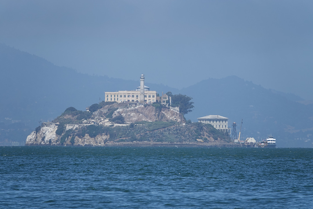 Und heute? Ging’s dann entlang der westlichen Bay Bridge (unter der man in der Ferne wieder die Golden Gate Bridge sehen kann) und um Yerba Buena herum zum Ankerplatz bei Treasure Island.