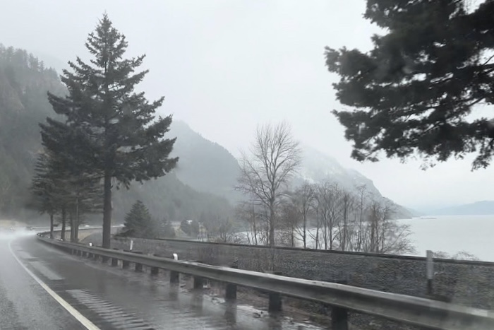 Dahinter leuchten schon wieder schneebedeckte Berge. Am nächsten Tag soll sich das Wetter verschlechtern und so fahren wir nach einem kurzen Zwischenstopp und leckerem Essen weiter, übernachten erst hinter der Landesgrenze, schon in Oregon, im Örtchen Ontario. Die Bergkette der Kaskade Mountains vor Portland queren wir entlang des mächtigen Columbia River, der seinen Lauf tief in diese Erhebung eingegraben hat. So ist die Straße zwar gewunden, aber während wir an den Hängen ein paar Hundert Meter über uns Schnee sehen, fällt unten am Flussufer nur Regen.