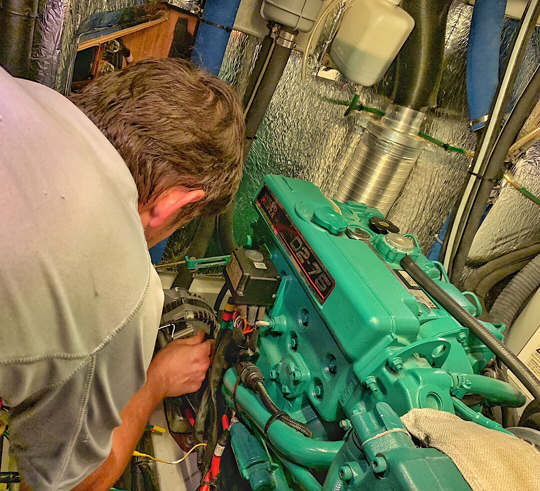 Die Bürsten sind getauscht, aber das eigentliche Problem lag in einem Kabelbruch innerhalb der Lichtmaschine an der Verbindung zum externen Regulator. Auf dem Prüfstand zeigt die Lichtmaschine diesmal genau das, was sie soll. Neil ist stolz, wir sind superfroh, wieder ein funktionsfähiges Backup zu haben.