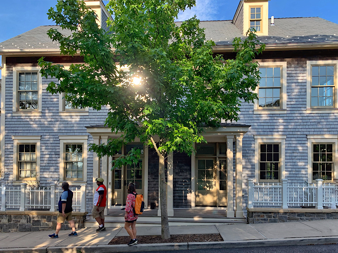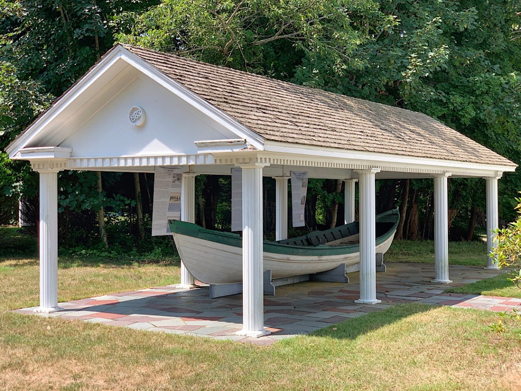 Nahe der Einfahrt machen wir dann noch einen Landgang, über die erst 2020 angelegten Treppen geht es hinauf zum neu errichteten Columbus Monument auf der Klippe. Wer die Diskussion um die Denkmäler in den USA etwas verfolgt hat wird wissen, dass nicht nur die Monumente der Südstaatengeneräle aus dem Bürgerkrieg und der Sklavenhalter in der Kritik stehen, sondern auch die Rolle von Kolumbus als „Entdecker Amerikas“ (nicht nur, dass vor ihm nachweislich auch andere Europäer da waren und er außerdem nur Inseln der Karibik betreten hat, sondern vor allem wegen die Auswirkungen, die die „Entdeckungsreise“ für die Ureinwohner hatte).