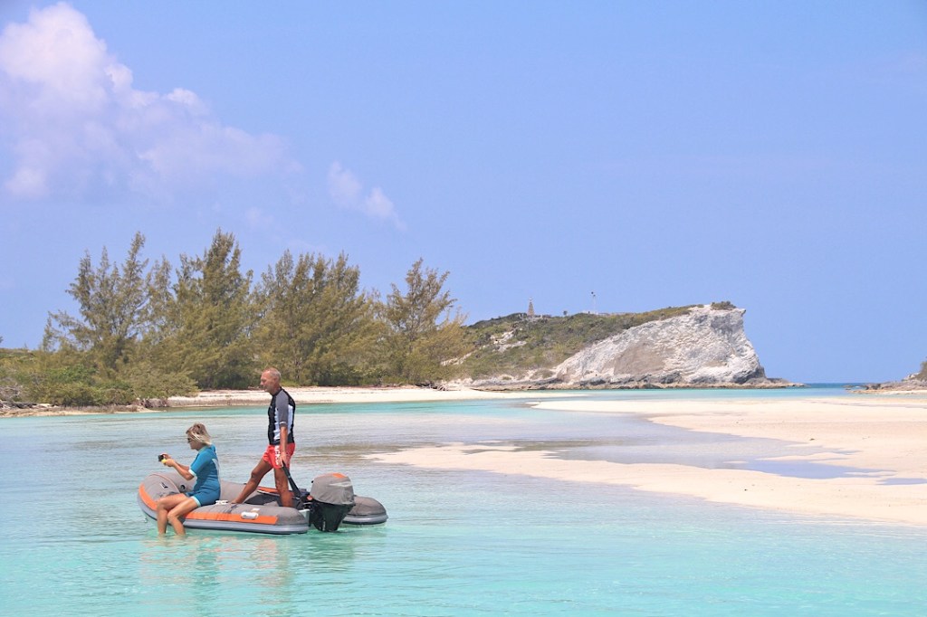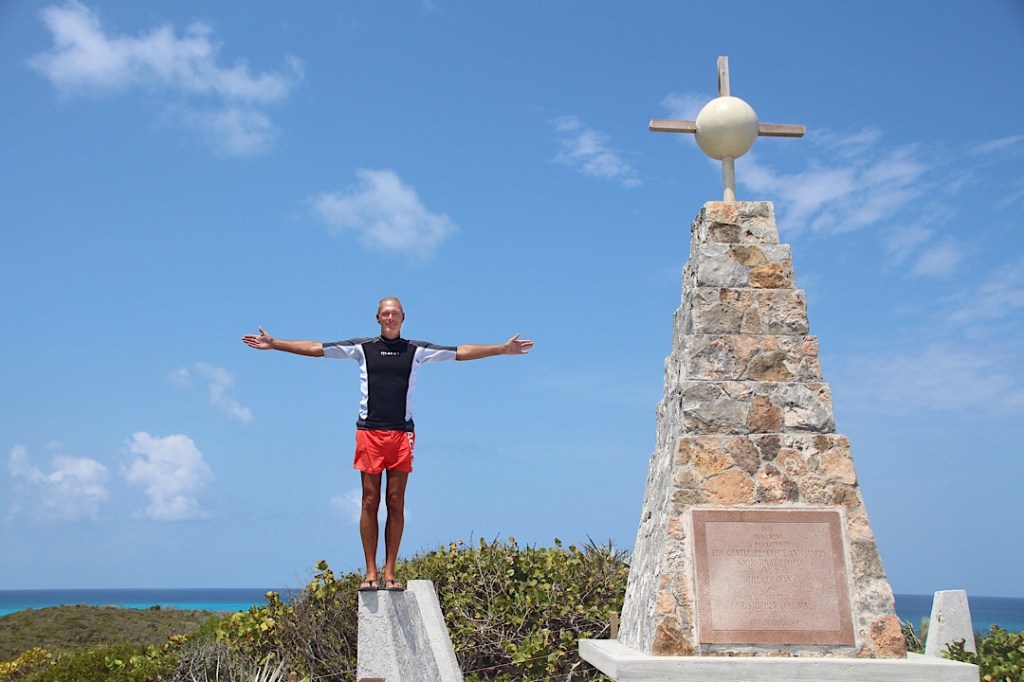 Bei unserer Fahrt mit dem Mietwagen haben wir den Norden von Long Island ausgespart und damit auch das „Columbus Monument“ am Cape Santa Maria, der Nordspitze der Insel. Macht aber nichts, von unserem jetzigen Ankerplatz in der Calabash Bay können wir mit dem Dinghy dorthin. Das bietet zudem den Vorteil, dass wir am Denkmal vorbei mit dem Beiboot in die Lagune hineinfahren können, die von der vorgelagerten und kaum als eigene Insel erkennbaren Newton Cay begrenzt wird.