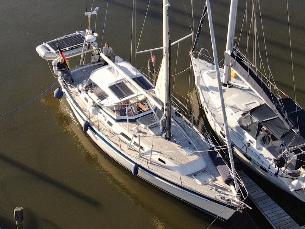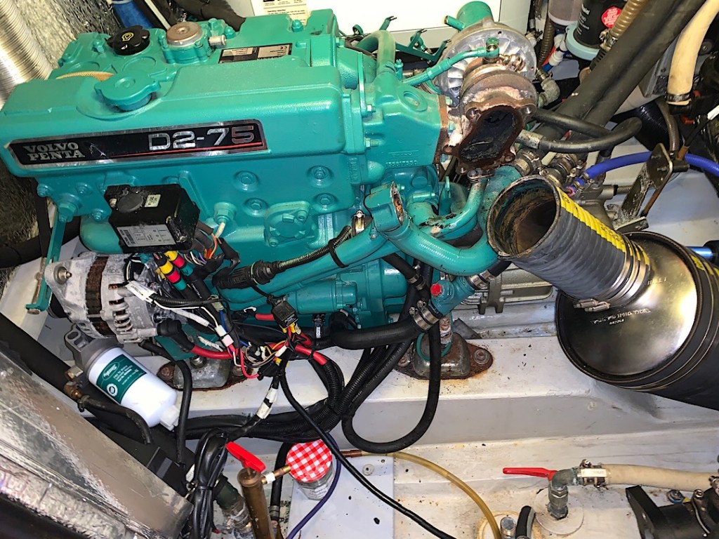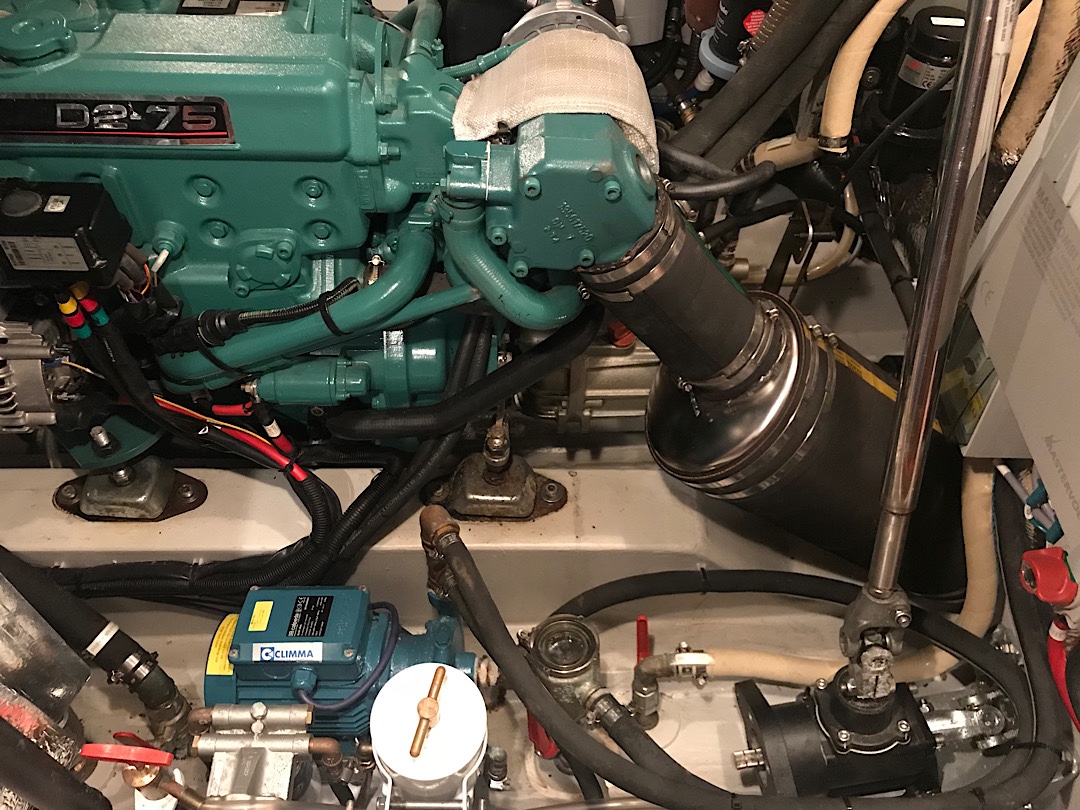 Ganz oben auf der Liste stehen die Checkups unserer beiden Dieselmotoren, also Hauptmaschine und Generator. Da ist mal ein bisschen mehr zu tun als die von uns regelmäßig durchgeführten Öl-, Filter- und Impellerwechsel. Turbo und Wärmetauscher werden ausgebaut. Der letztere bietet gleich eine unangenehme Überraschung. Beim Ausbau zeigt sich, dass eine verdeckt liegende Dichtung ihrem Namen nicht mehr ganz gerecht wird. „Gerade noch rechtzeitig“, sagt der Mechaniker.