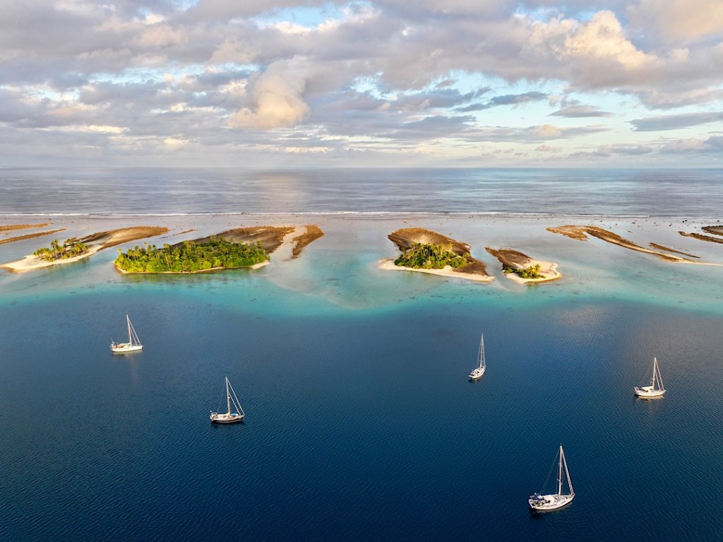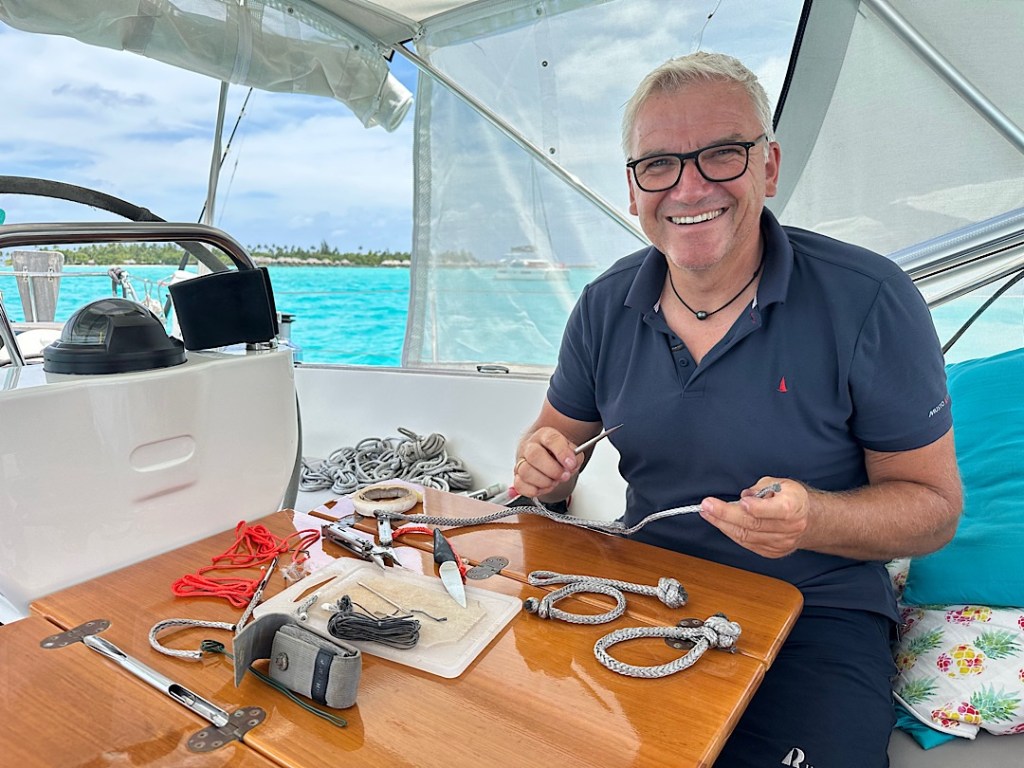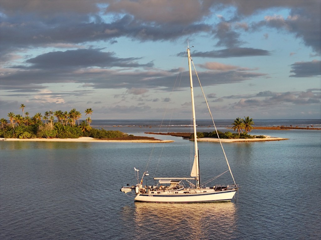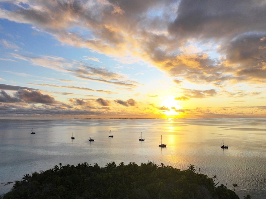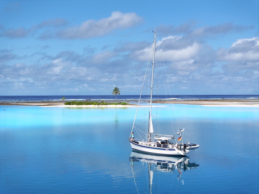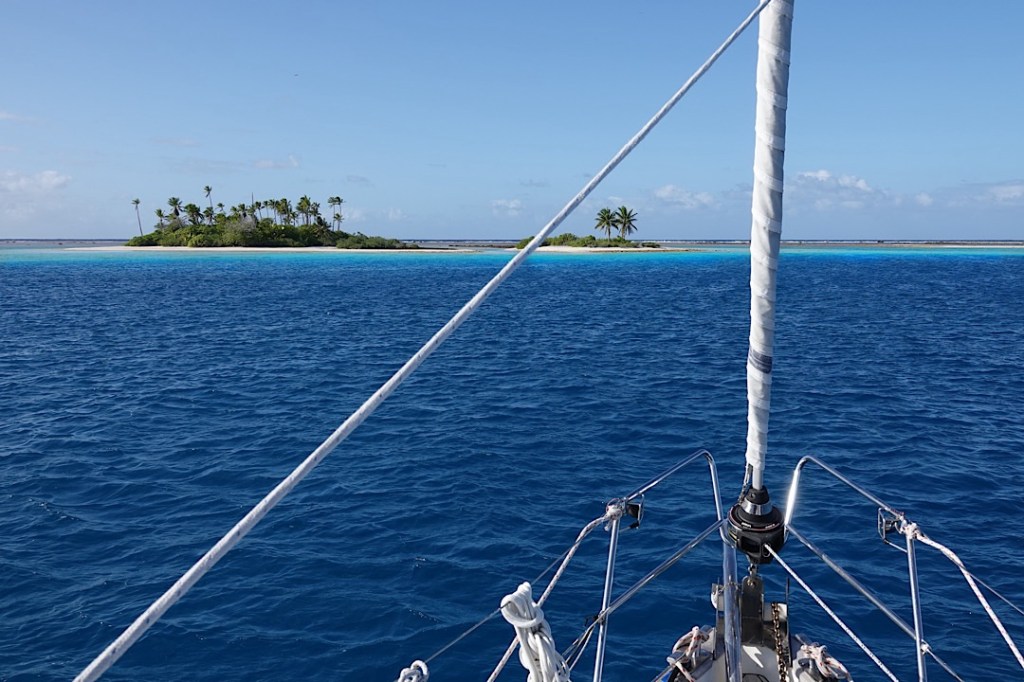 Zur Selbstversorgung und eben auch für den Verkauf im Insel-Shop. Auch Perlen, Tücher und geschnitzter Schmuck werden dort angeboten. Wir begnügen uns neben Kräutern und Pak Choi aber mit Bananen, Honig und Eiern. Eine gute Ausbeute, für ein kleines Inselchen in den Tuamotus geradezu paradiesisch! Zurück zu den Booten …