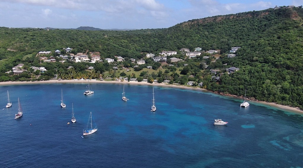 Ein wunderschöner Ankerplatz, wobei die lokalen Boote an Bojen in Wassertiefen liegen, die für Flora bei Ebbe schon grenzwertig flach sind. Der Blick in die andere Richtung zeigt die Wattbereiche am Ufer noch deutlicher und lässt auch ein paar der bei Ebbe auftauchenden Sände erkennen.