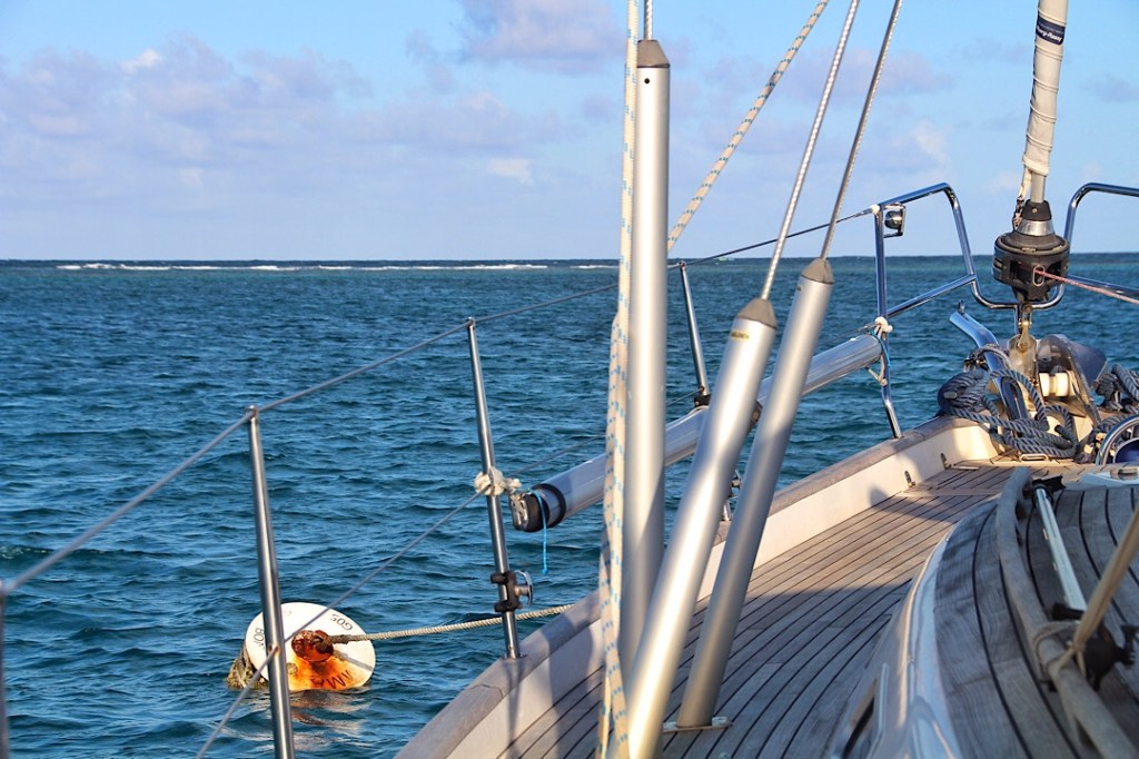 Kurzerhand wird der Windscoop zweckentfremdet. Eigentlich soll diese Nylonkonstrunktion den Wind in die Vorschiffsluke und damit durch das Schiff leiten. Das funktioniert am Anker (oder hier an der Boje) auch echt gut.