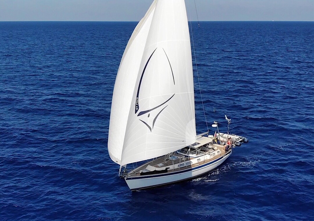 Den Code0 haben wir in den letzten drei Wochen intensiv im Einsatz gehabt, wie bei unserem vorigen Schiff hat er uns begeistert. Highlight war, dass er aus 6,5 kn wahrem Wind 4,5 kn Fahrt in unser schweres Dickschiff zauberte (bei seinem Lieblingswindwinkel von 60 Grad AWA).