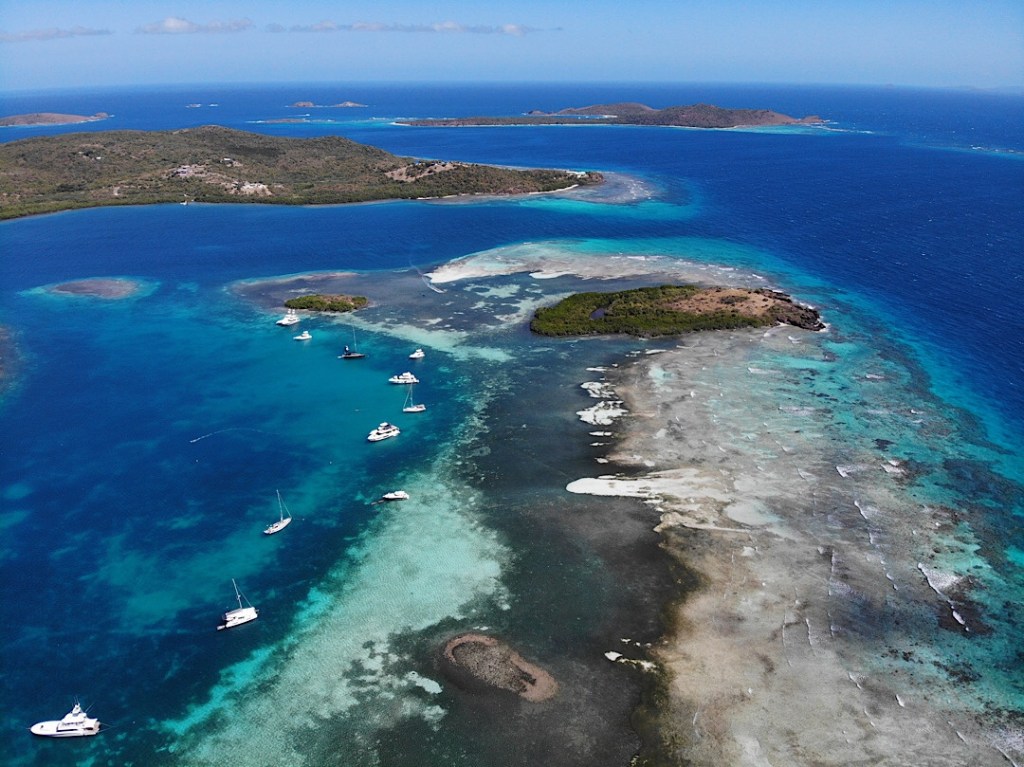 Tatsächlich kann ich den beiden schnorchelnd helfen, wieder freizukommen und neu an der Boje festzumachen. Uns ist es hier aber zu rollig und so gehen wir wieder ankerauf, umrunden auch die Südspitze von Culebra und ankern letztlich in der Bahía de Almodóvar, wieder wunderbar geschützt von dem vorgelagerten breiten Riff. Die Oroboro von Yuka und Francesco ist schon da, die beiden kiten. Kurz nach uns laufen Kim und Chuck mit der La Rive Nord ein. Ansonsten finden jetzt am Wochenende allerdings auch einige Motoryachten von der Ostküste Puerto Ricos hier herüber. Sie machen alle – für uns ungewohnt – mit Heckanker in Richtung Riff (also zum Wind) und Buganker in Richtung Bucht fest. Voll ist es übrigens trotzdem nicht, sogar ein paar Moorings sind noch frei.
