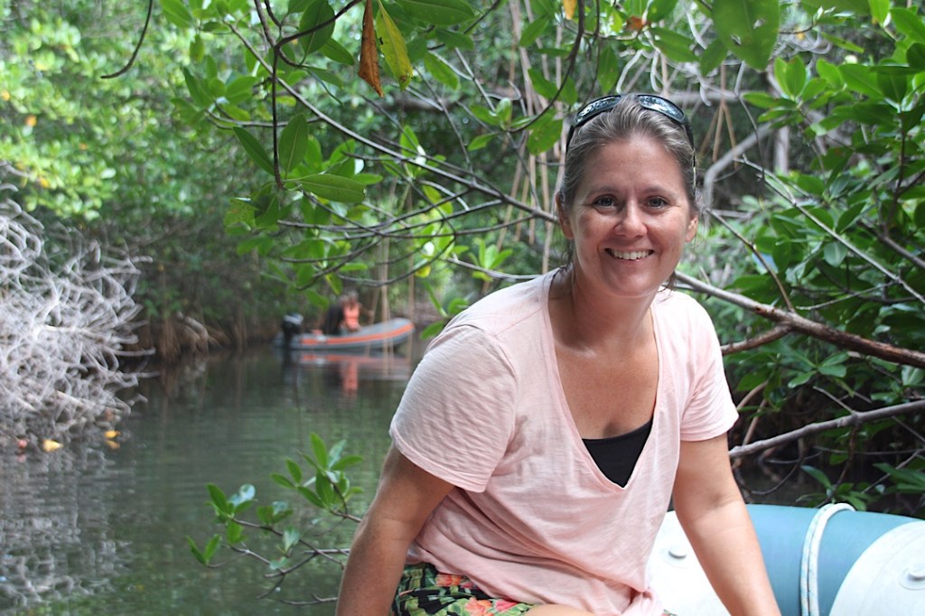 Und nachdem Ingo dankenswerterweise unseren mal wieder sprotzenden und zudem an falscher Stelle (ins Gehäuse) Wasser verspritzenden Außenborder einem unterwarteten Quick-Fix unterzogen hat dann geht es mit den Dinghys auf Entdeckungstour in die Mangroven. Wie im Osten von Puerto Rico (Monkey Island/Cayo Santiago) gibt es mit der Isla Cueva auch hier eine Affeninsel, etwa 400 (eigentlich nicht heimische) Affen leben dort. Allerdings gut versteckt, zu sehen bekommt man sie selten und nur mit Glück kann man sie gelegentlich hören. Beides ist uns nicht vergönnt, trotz der professionellen Affenimitationsgeräusche seitens der in Surinam entsprechend geschulten Andrea und Ingo.