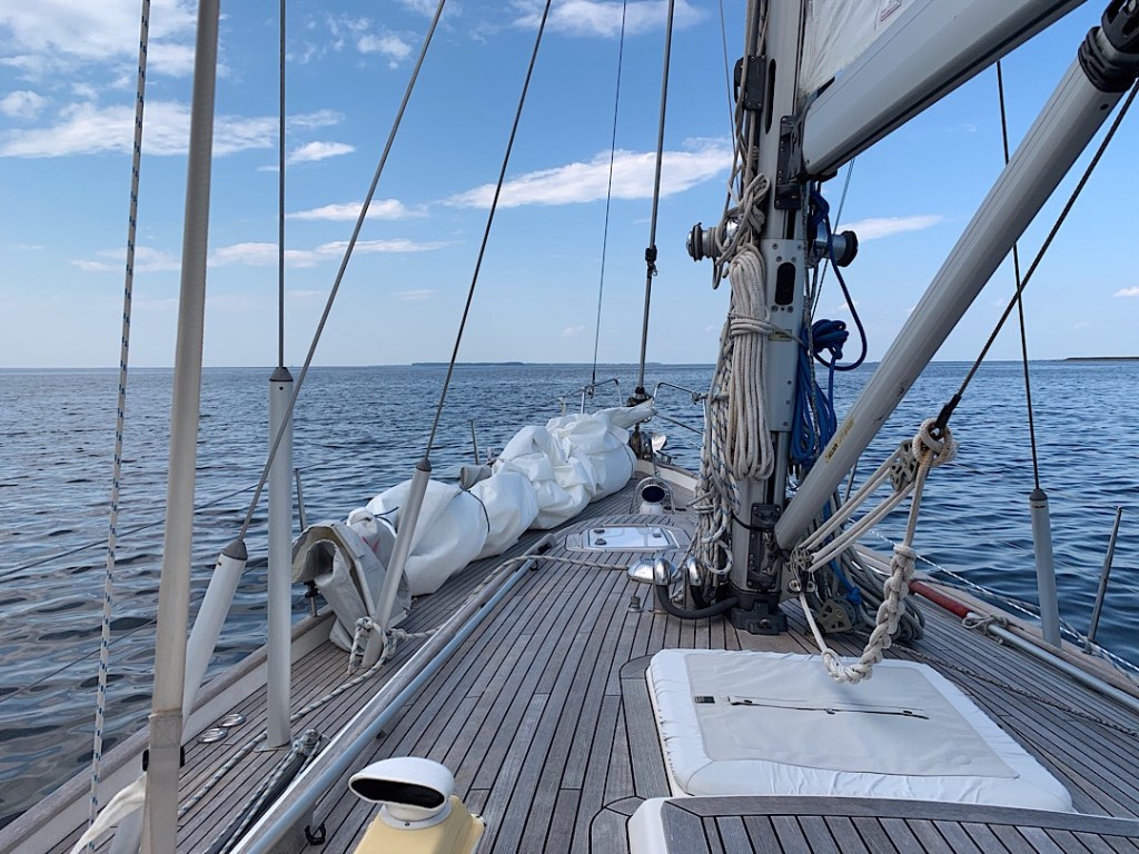 Nicht nur, dass sie unversehrt auf uns wartet (schon das eine große Erleichterung 😅). Obwohl wir quasi mit leeren Taschen nach Deutschland geflogen sind, bringen wir tatsächlich fast alles in den eigentlich schon vollen Schränken und Schapps unseres Bootes unter. Es erinnert ein bisschen an Hermine Grangers magische Handtasche, als wir Gegenstand um Gegenstand verstauen, obwohl doch eigentlich kein Platz mehr frei zu sein scheint. Lediglich das neue Wingfoil samt Board wandet erst einmal unausgepackt mit Tasche ins Vorschiff.