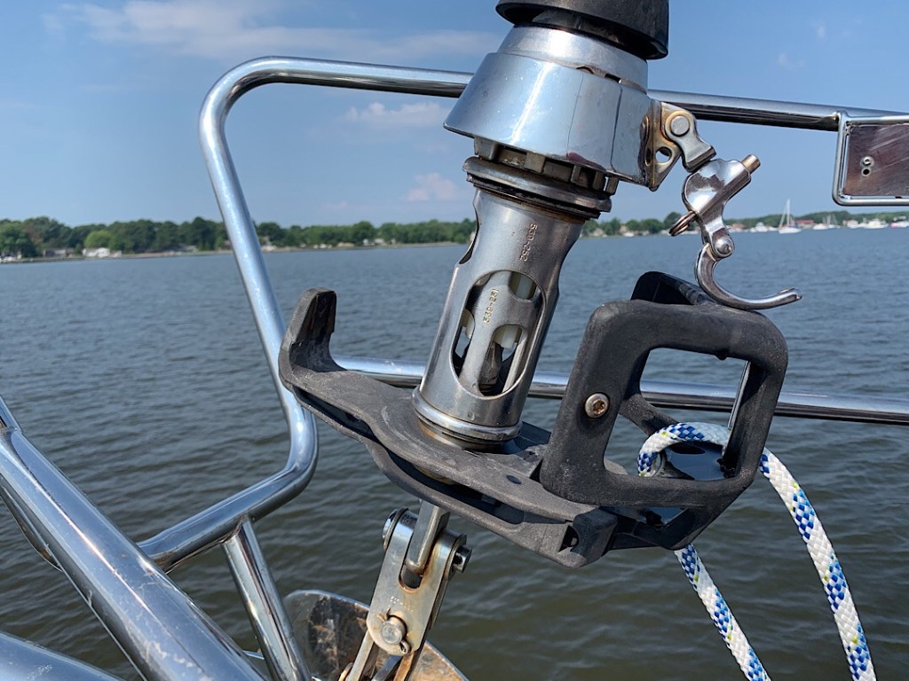 So ähnlich läuft es auch mit der Montage des von Lewmar reparierten und nach Hamburg geschickten Autopiloten. Dieser “Mamba-Drive” ist unser Zweit-Autopilot, auf den wir umschalten können. Der Antrieb im Motorraum ist schnell montiert, aber beim elektrischen Anschluss hakt es dann.