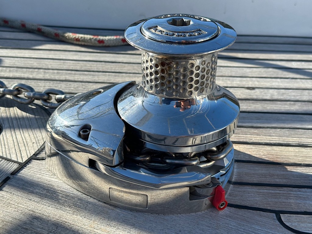 Ein bisschen Bootsarbeit steht an. Unsere Ankerwinsch hat uns vor einiger Zeit mit losen Teilen (eine Sperrklinke und eine Feder) auf dem Vorschiff überrascht. Auf Langfahrt ist die Ankerwinsch immens wichtig, zum Glück war aber nur eine Schraube abgebrochen, welche die Sperrklinke für manuelles Aufholen der Ankerkette (bei Ausfall des Elektromotors) hält. Die Winsch funktionierte also weiterhin, wir konnten erstmal aufatmen. Aber nachdem die Ersatzteile eingetroffen sind, veranstalten wir ein bisschen Chaos auf dem Vorschiff: