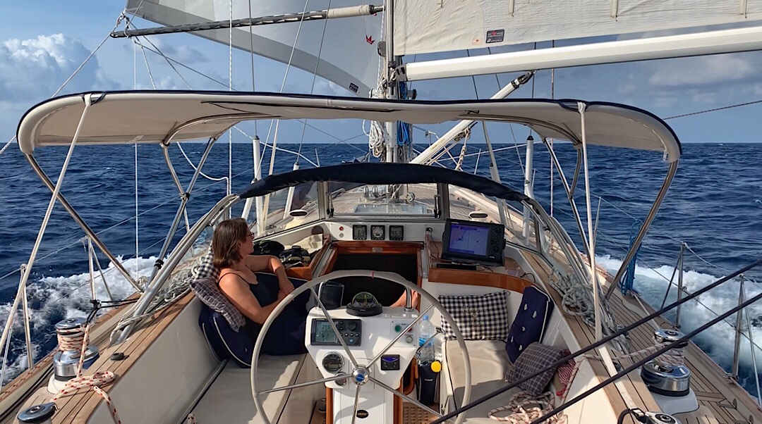 Und wieder ist es ein Schmetterlingskurs, der kräftige Passatwind schiebt uns gut voran.