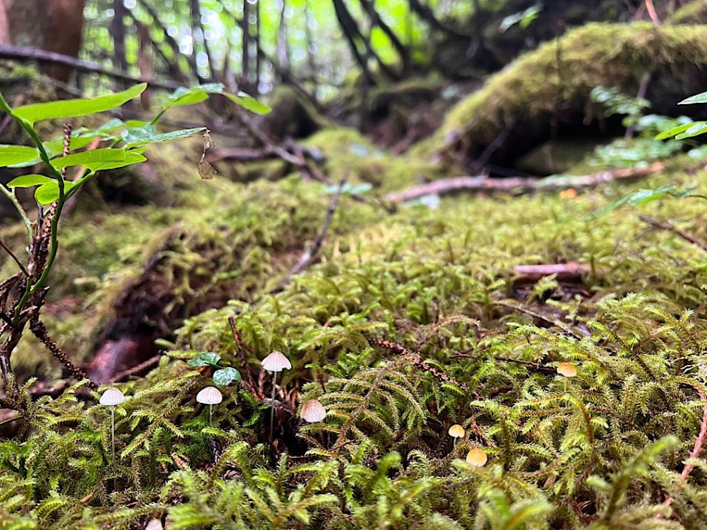Was die Marschverpflegung angeht, machen sich Himbeeren und Lachsbeeren diesmal rar, dafür finden wir aber Mengen von Blaubeeren. Pilze auch (auch größere als diese niedlich kleinen), aber die lassen wir stehen, damit kennen wir uns schlicht nicht genügend aus. Aber echte Pilzsammler hätten hier sicher ihre Freude.