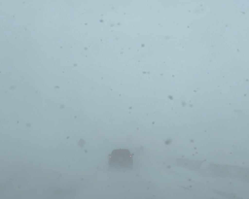 Im Schneetreiben geht es weiter. Statt wie ursprünglich gedacht über die Black Hills zu fahren bleiben wir lieber auf der i90, die in einem kleinen Bogen nördlich um die Berge herum führt. Damit verpassen wir auch Mount Rushmore, jenes ikonische Monument der vier der US-Päsidenten Washington, Jefferson, Lincoln und Roosevelt, deren Portraits hier 18 m hoch in den Granit des Berges gemeißelt wurden. Allerdings hätten wir bei der schlechten Sicht wohl ohnehin nur Schemen davon zu Gesicht bekommen.😁
