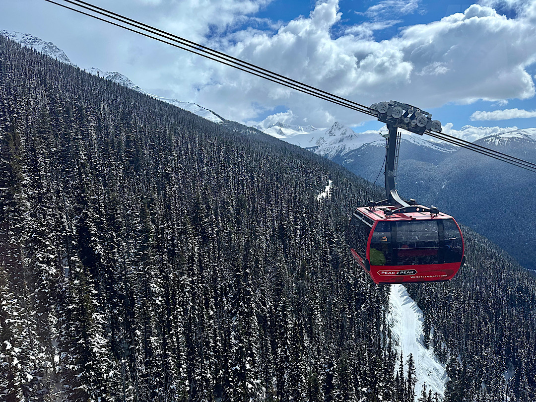 Das Skigebiet erstreckt sich über mehrere Berge. Die beiden gegenüberliegenden Spitzen von Blackcomb und Whistler sind dabei auf 4,4 Kilometer Luftlinie durch die spektakuläre „Peak 2 Peak Gondola“ mit nur 36 m Höhenunterschied verbunden. Dabei gibt es auf jeder Seite nur zwei Seilbahnstützen, dazwischen erstreckt sich ein freie Spannweite von über 3 Kilometern. In dieser Disziplin wird sie weltweit nur von der Seilbahn Zugspitze knapp übertroffen, die aber schräg den Berg hinauf führt.