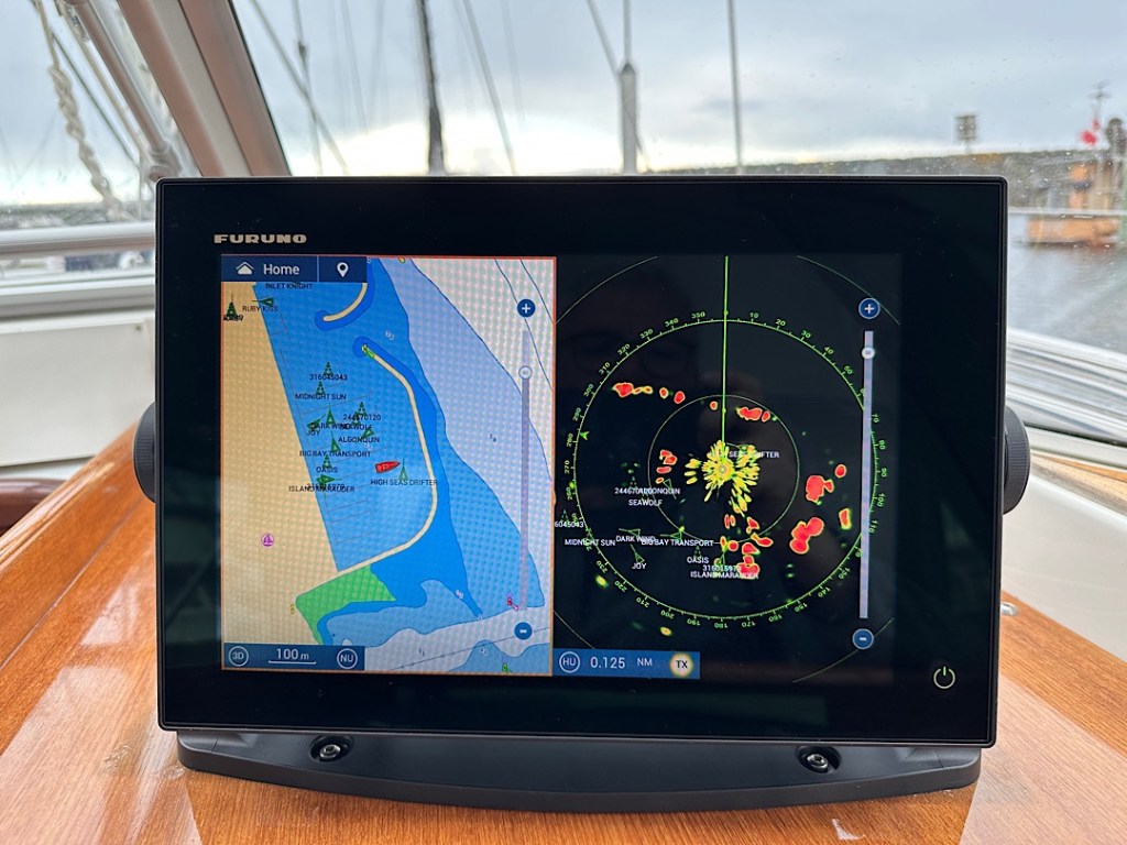 Einen kurzen Wintereinbruch haben wir hinter uns. Flora ist praktisch abfahrbereit. Demnächst soll es wieder losgehen. Die neue Fock ist auf der Rollanlage. Den neuen Furuno-Plotter haben wir installiert (das war einfach) und mit dem Radar verbunden (theoretisch easy, praktisch nicht ganz so simpel). Die Knackpunkte dabei: die 48 Volt Stromversorgung des DRS 2 Radar lief über den alten (MFD12) Plotter, der neue kann das nicht. Statt dessen muss eine zusätzliche PSU (Power Supply Unit) die Stromversorgung übernehmen. Dafür müssen natürlich die Kabel quer durchs Schiff gezogen werden. Zum Glück hat unser Boot gut dimensionierte Kabelkanäle, aber um die zu erreichen, müssen die davor liegenden Schränke alle ausgeräumt werden. Also ein bisschen Chaos im Schiff. Auch die Herausforderung des notwendigen Software-Updates im Radar einschließlich der vorübergehend zu ändernden IP-Adresse meistern wir schließlich. Das Radar läuft und wird vom Plotter erkannt.