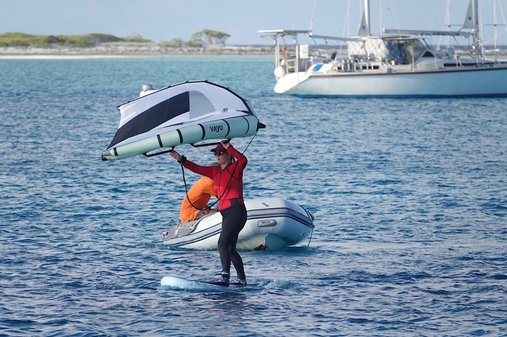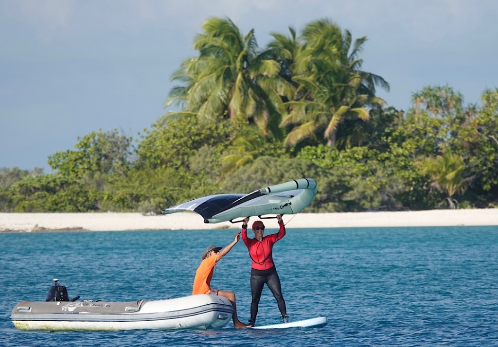 Ganz weit brauchen wir nicht zu fahren. An der unserer Ankerbucht vorgelagerten Insel Luakapa haben wir schon die erste Walsichtung. Jeweils vier von uns Gästen plus Guide gleiten ins Wasser. Bis auf fünf Meter dürften wir uns den Walen nähern, aber da die Brustflossen vier Meter lang sein können ist mehr Abstand durchaus ratsam.