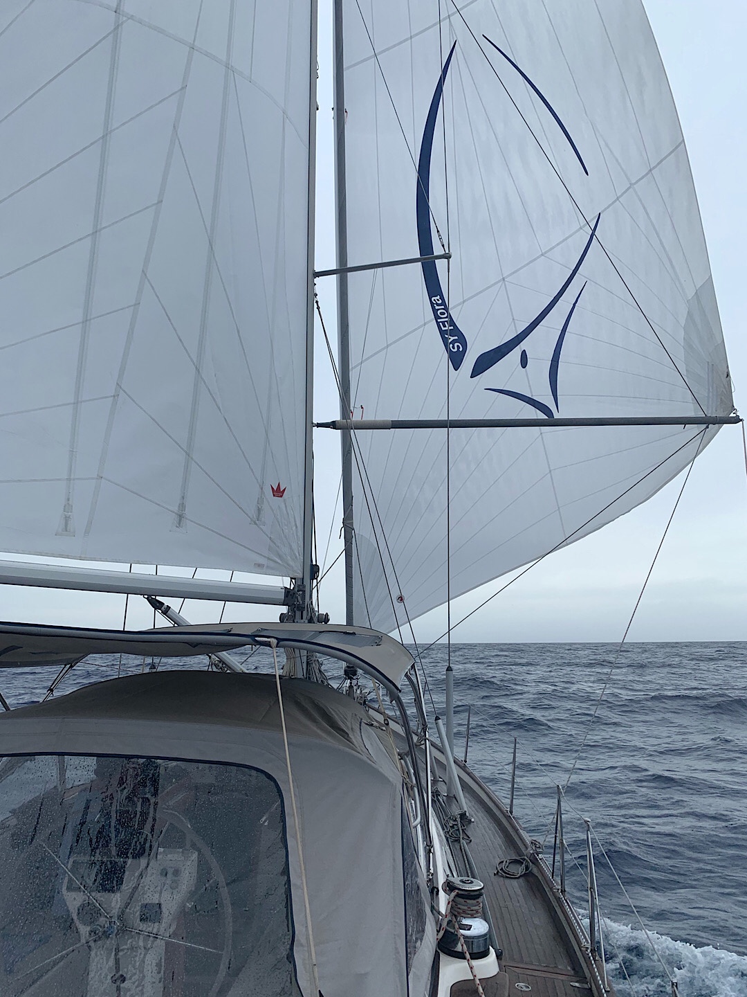 Kein allzu gutes Zeichen, dass die Fock (mal wieder) abgeschlagen und am Seezaun angelascht ist. Nach mehreren problemlosen Tagen lässt sie sich mal wieder nicht einrollen und kann deshalb nur so geborgen werden. Gestern Abend wollten wir uns da nicht mehr drum kümmern, aber heute morgen muss ich dann natürlich doch dran. Ich baue die Leinentrommel ab (da hab ich inzwischen schon Übung drin). Diesmal schraube ich aber auch die Furlex noch weiter auseinander, um besser an die Kugellager heranzukommen. Die werden ausgiebig mit Süßwasser gespült, auch das obere, trocknen jetzt erstmal und kriegen dann ihr (seewasserfestes) Fett. Hoffentlich hilft es, ich kann nämlich immer noch keinen wirklichen Grund für die gelegentliche Fehlfunktion finden.