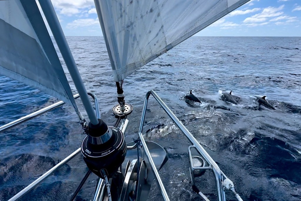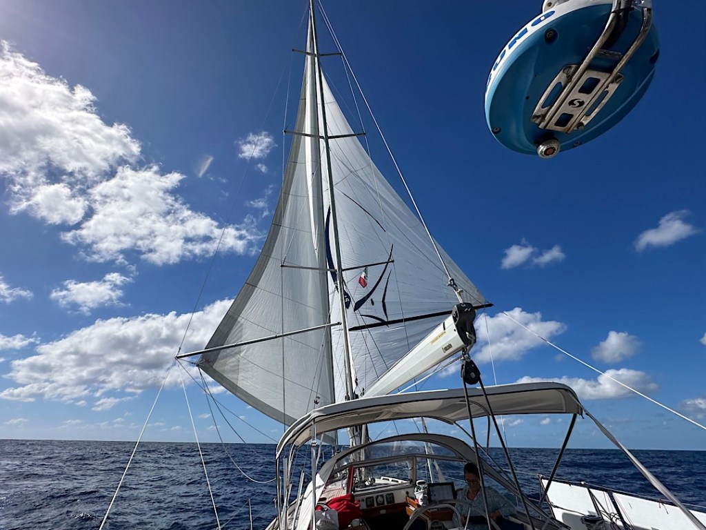 Möglich wird das Kontakthalten derzeit auf hoher See über Starlink. Wir schalten das Satelliten-Internet auf dieser Passage bisher zwei- bis dreimal am Tag ein, rufen die neuesten Wetterberichte ab, machen unsere Französisch-Lektionen. Und bleiben eben auch über Email, Facebook, WhatsApp und Instagram mehr oder weniger verbunden. Bisher hat der Verbindungsaufbau zu Starlink auch auf See unproblematisch geklappt, wir hoffen mal, dass das so bleibt.